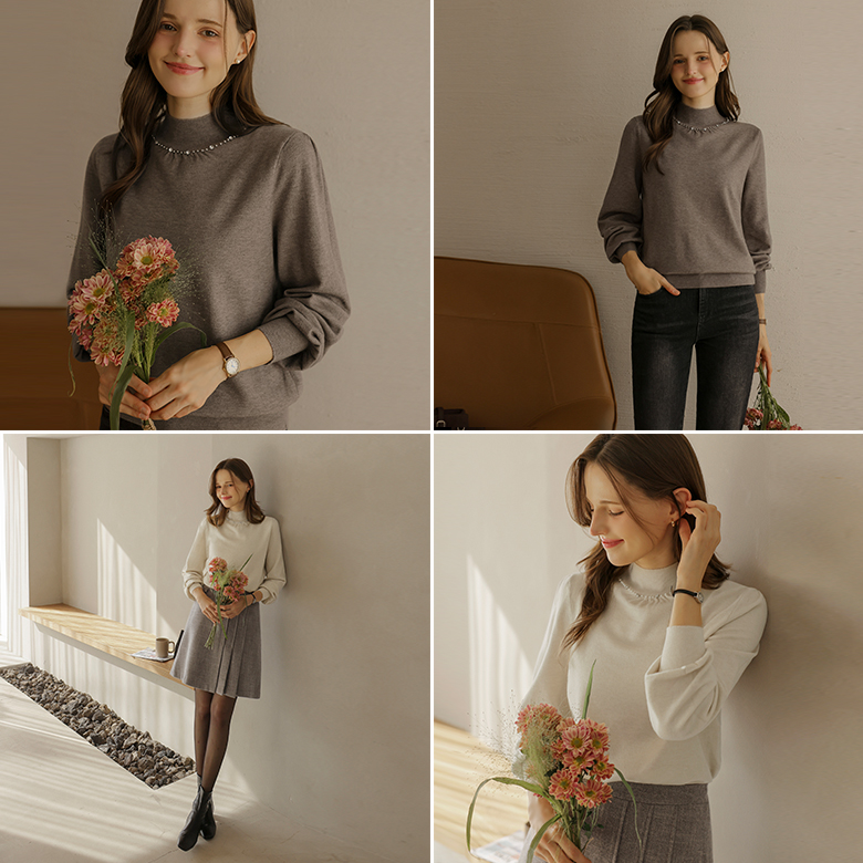 [뮤즈린] 에델 진주 큐빅 반목 니트