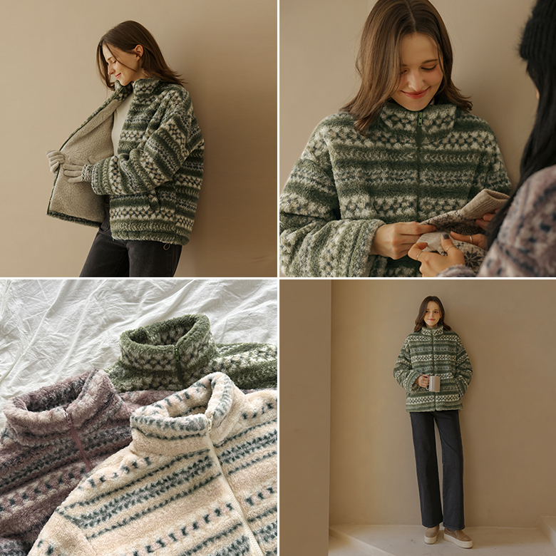 [뮤즈린] 몽실몽실 노르딕 후리스 집업 [양털]