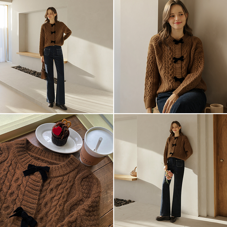 [뮤즈린] 멜링 벨벳리본 울 가디건
