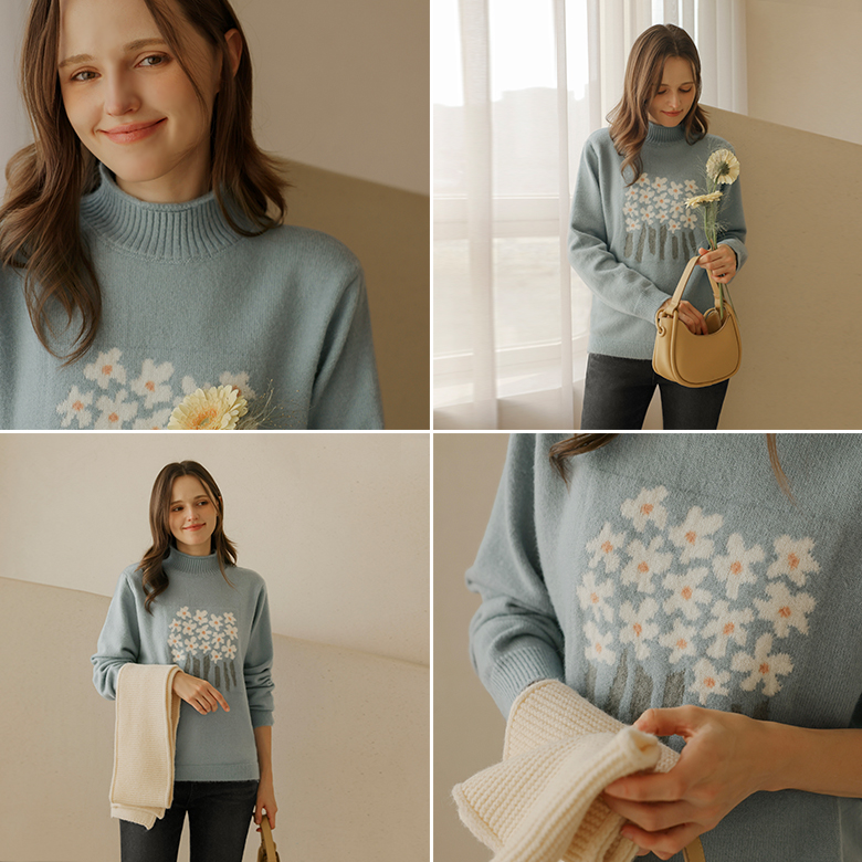 [뮤즈린] 이브 플라워자수 반목 니트