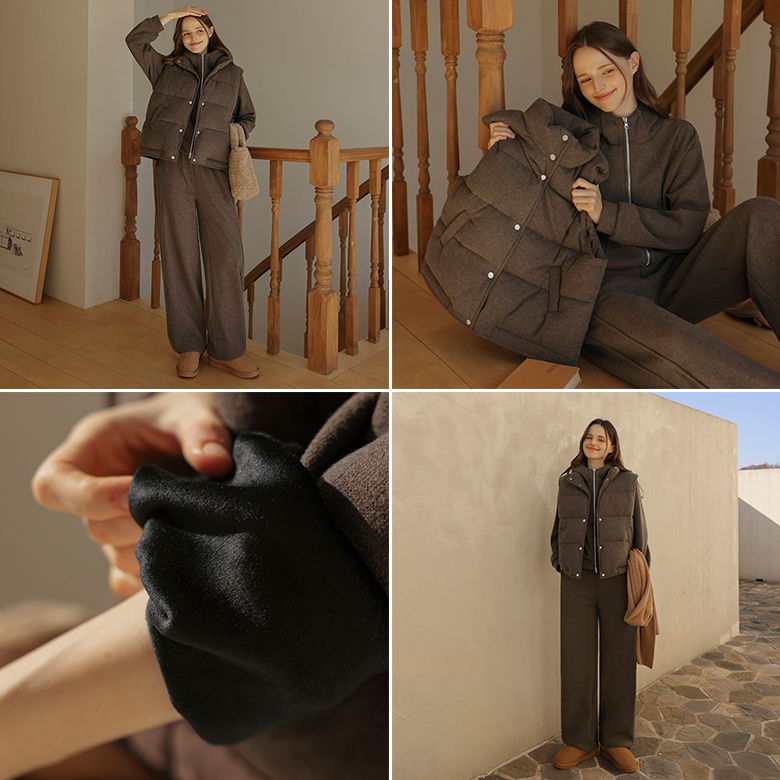 [뮤즈린] 따뜻해 패딩조끼+집업+팬츠 3종 SET [밍크]