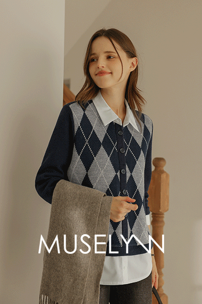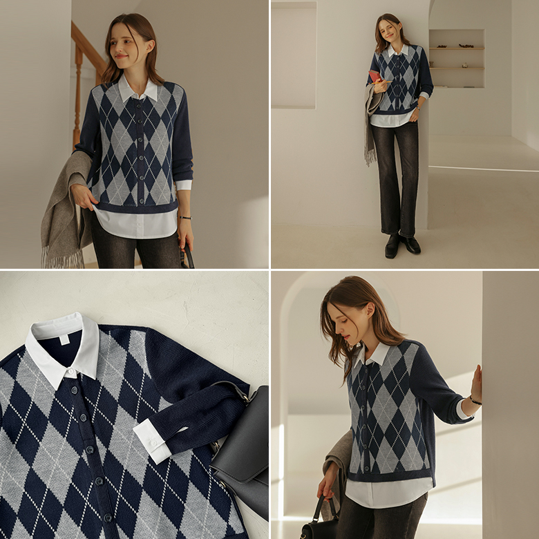 [뮤즈린] 마카 아가일 니트배색 셔츠
