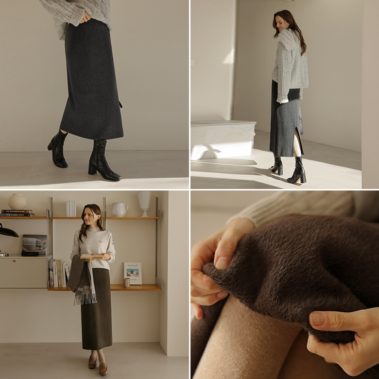 [뮤즈린] 로하 골지 니트 스커트 [밴딩/밍크]
