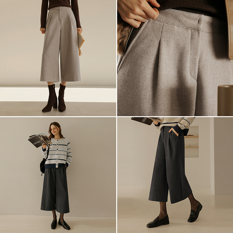 [뮤즈린] 주비 헤링본 핀턱 8부 와이드 슬랙스 [기모]