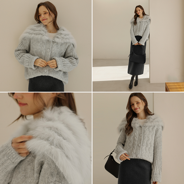 [뮤즈린] 로하 래빗 빅카라 꽈배기 가디건