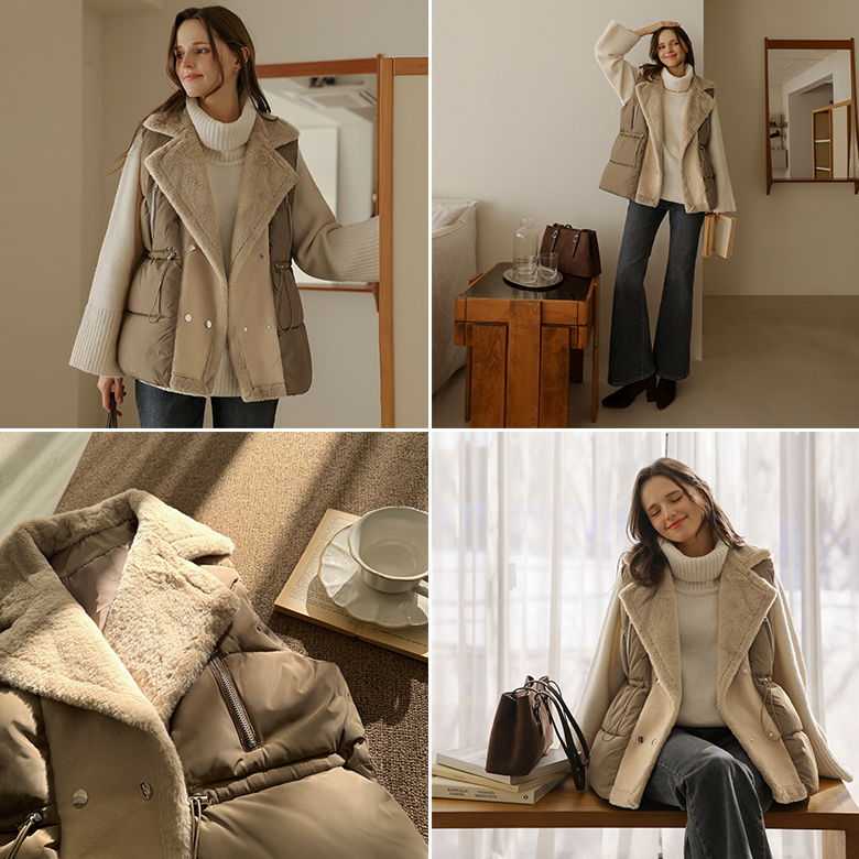 [뮤즈린] 카닌 퍼카라 더블버튼 패딩조끼