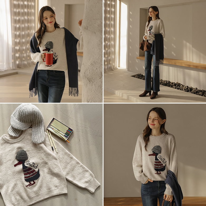 [뮤즈린] 비니 오리 울 니트