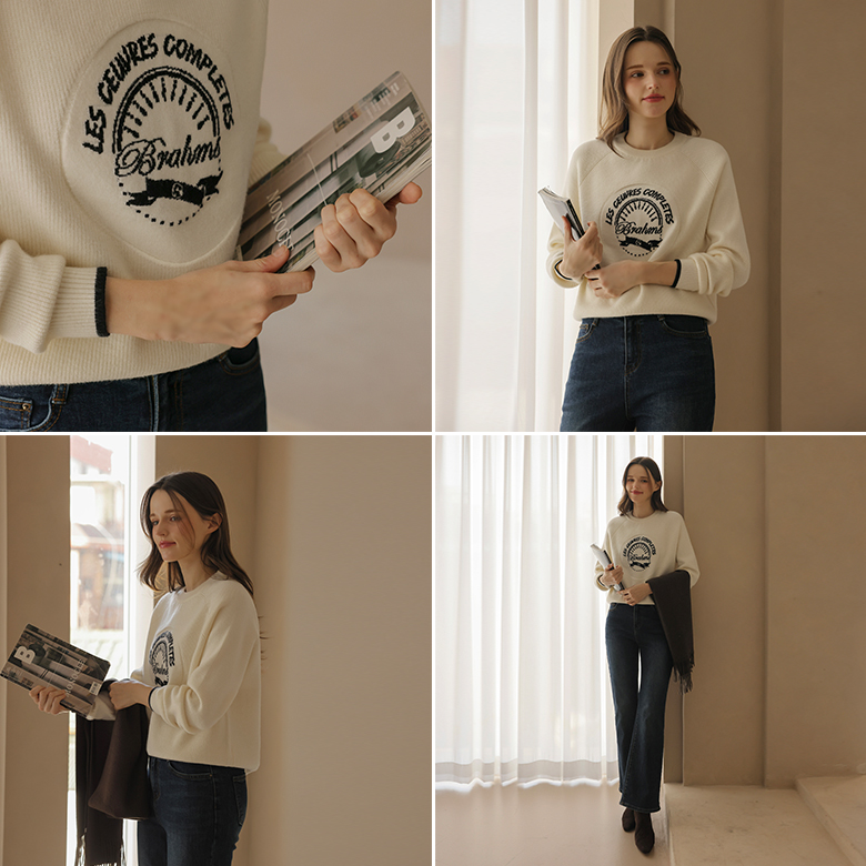 [뮤즈린] 디디야 레터링 배색 니트