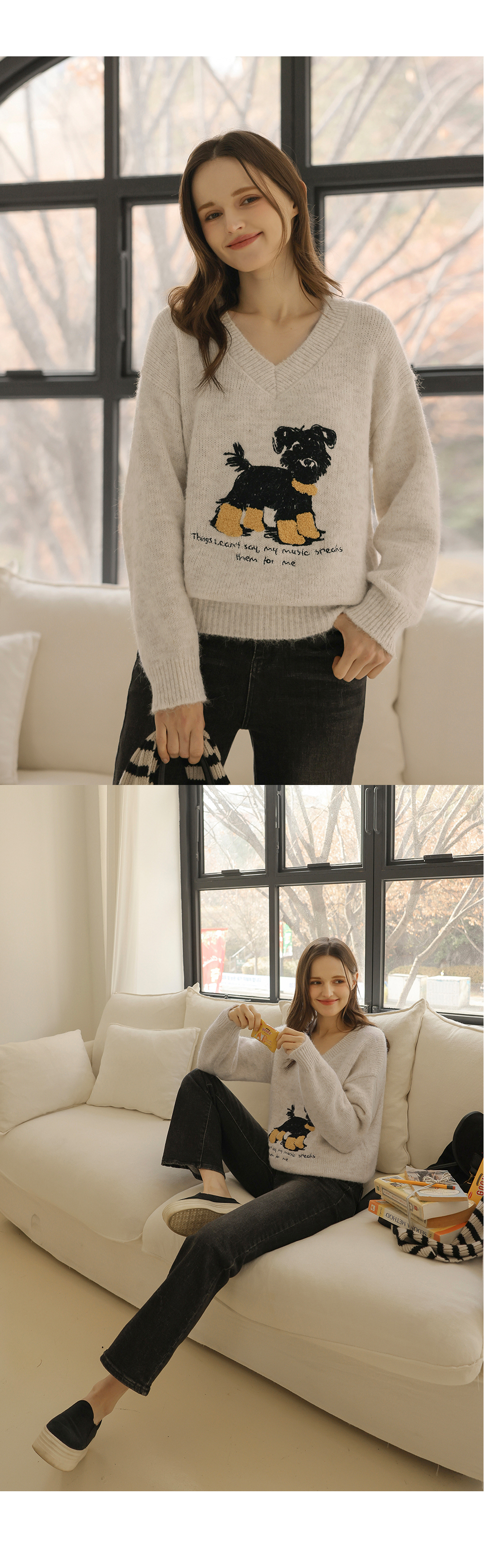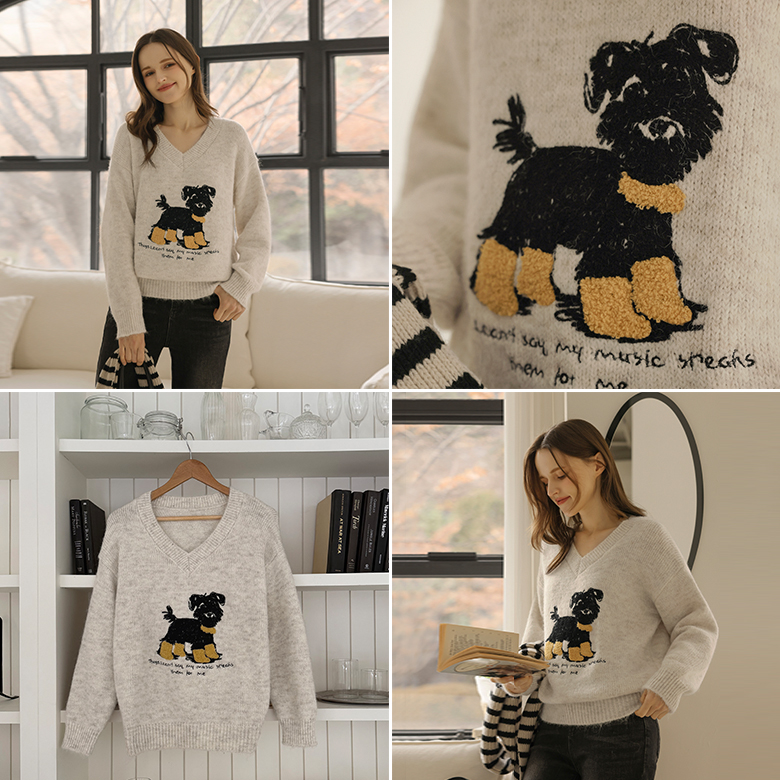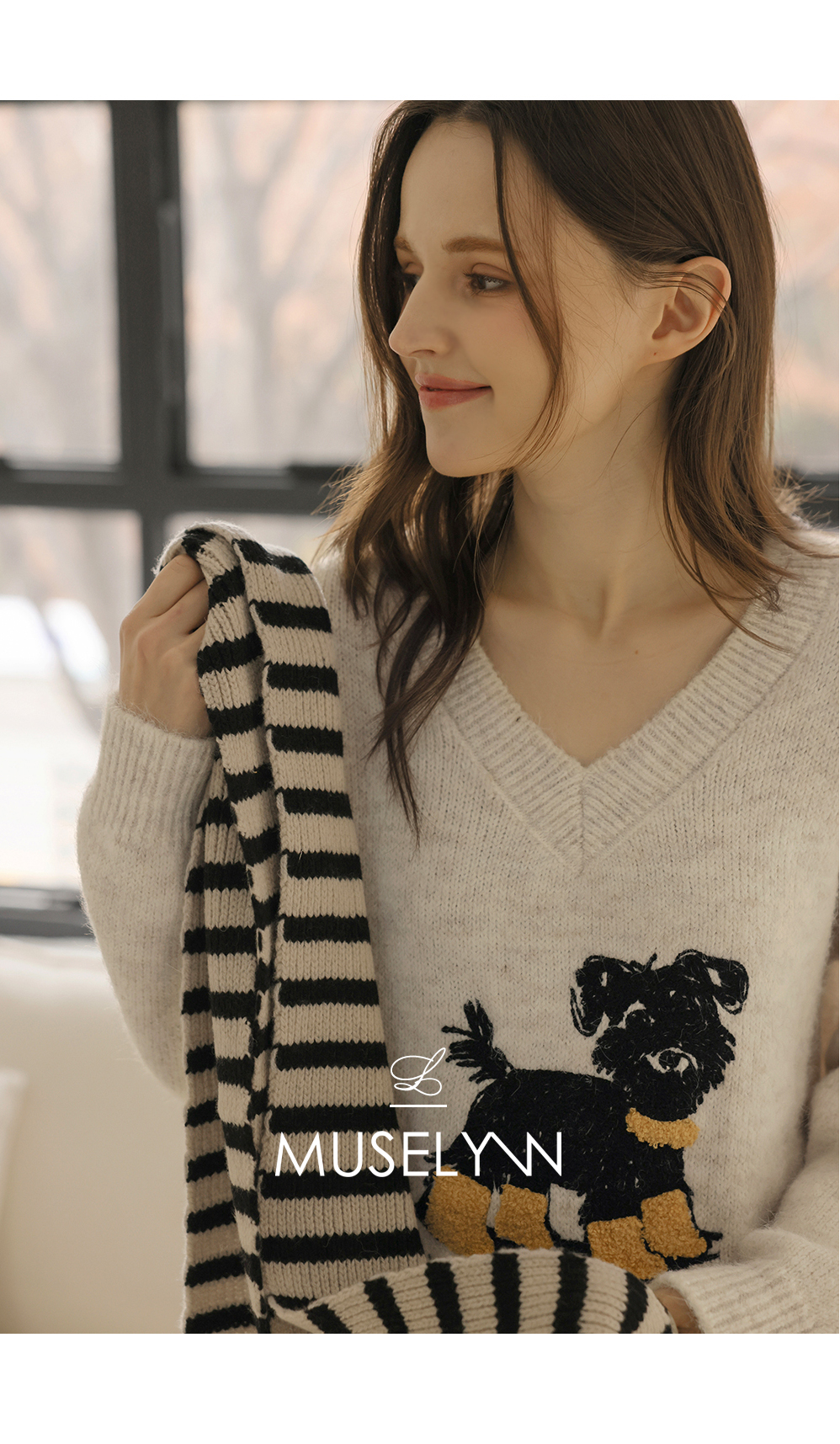 [뮤즈린] 스틴 퍼피 브이넥 울 니트