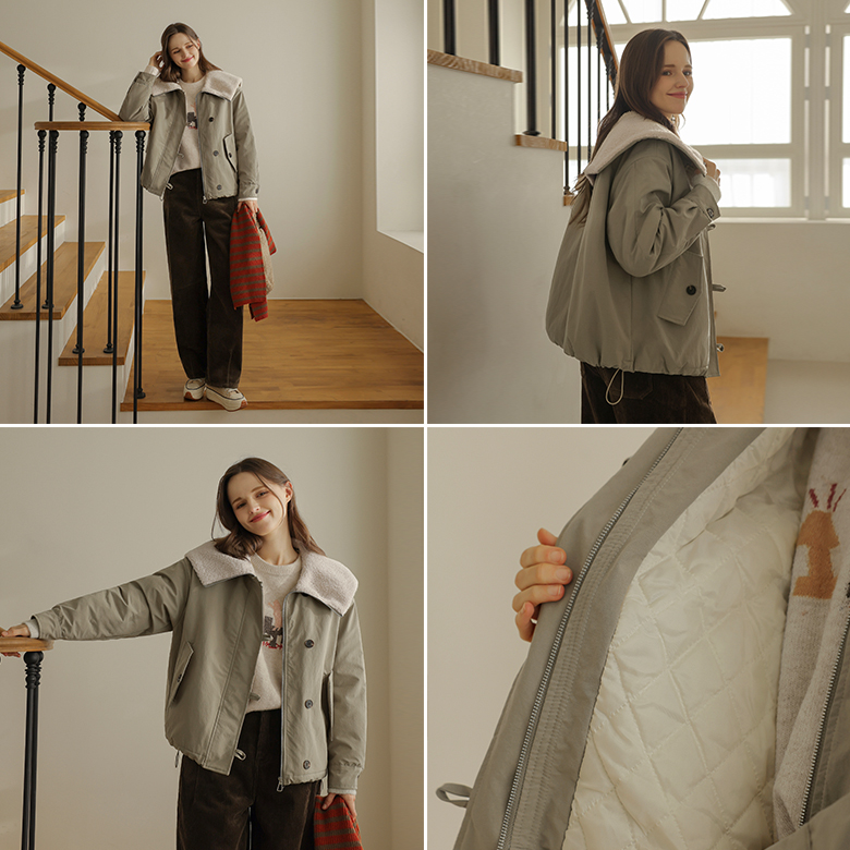 [뮤즈린] 호반 뽀글이 빅카라 야상점퍼 [누빔]