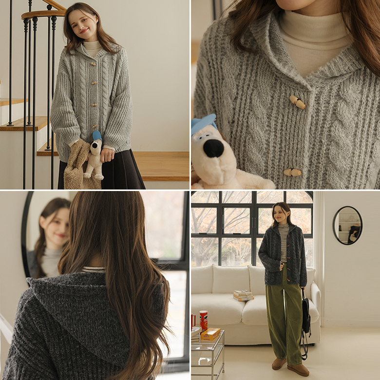 [뮤즈린] 모모린 꽈배기 후드 더플 가디건