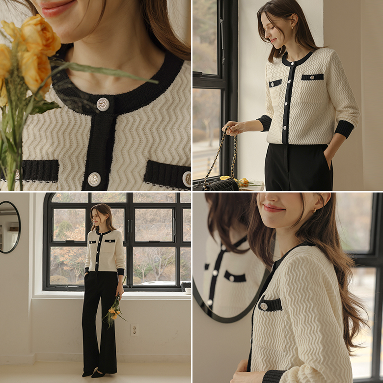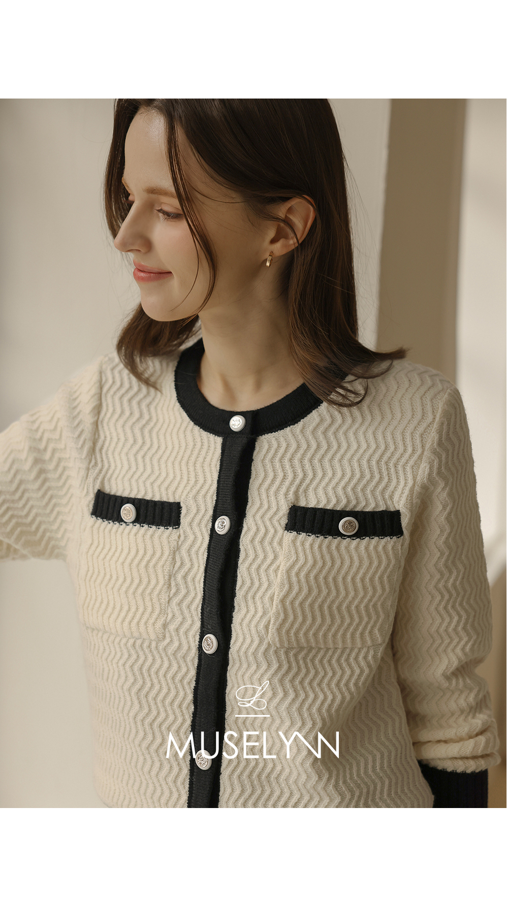 [뮤즈린] 체린 골드버튼 배색 가디건