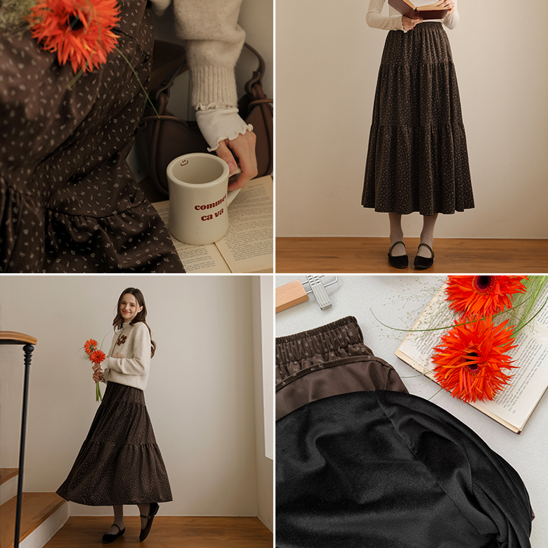 [뮤즈린] 코빈 플라워 벨벳 스커트 [밴딩/밍크]