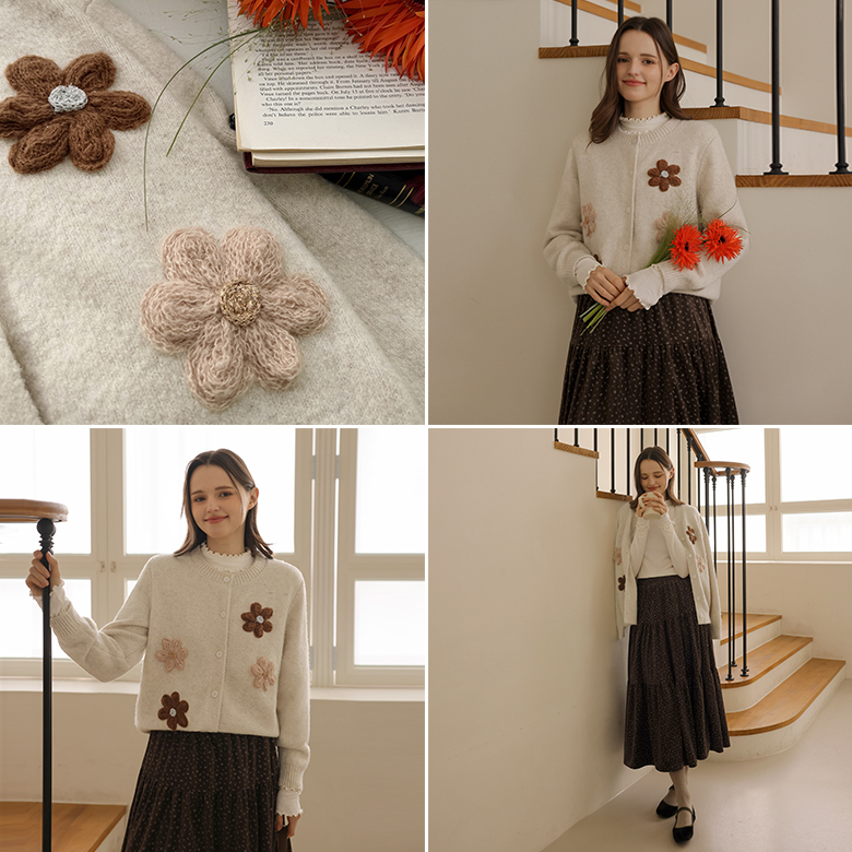 [뮤즈린] 코빈 플라워 뜨개 울 가디건