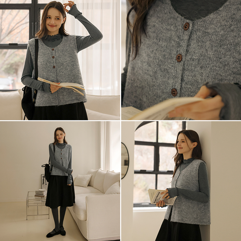 [뮤즈린] 루보 버튼 울 니트 조끼