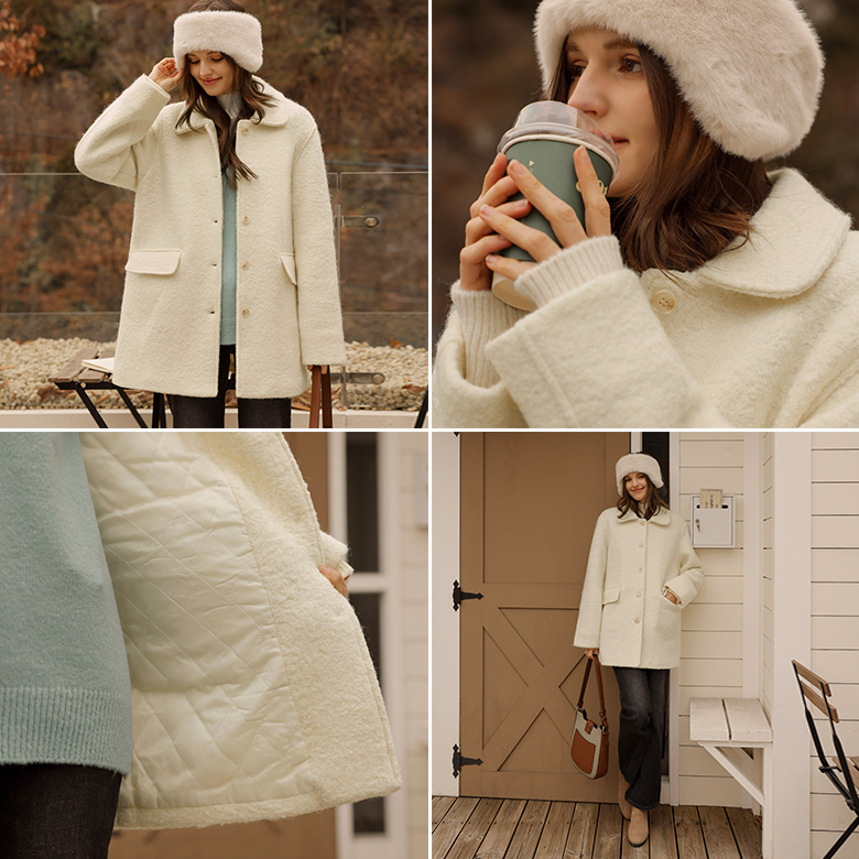[뮤즈린] 모노 부클 하프 코트 [누빔]