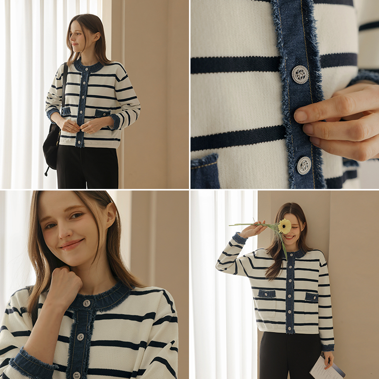 [뮤즈린] 도우 데님배색 단가라 가디건