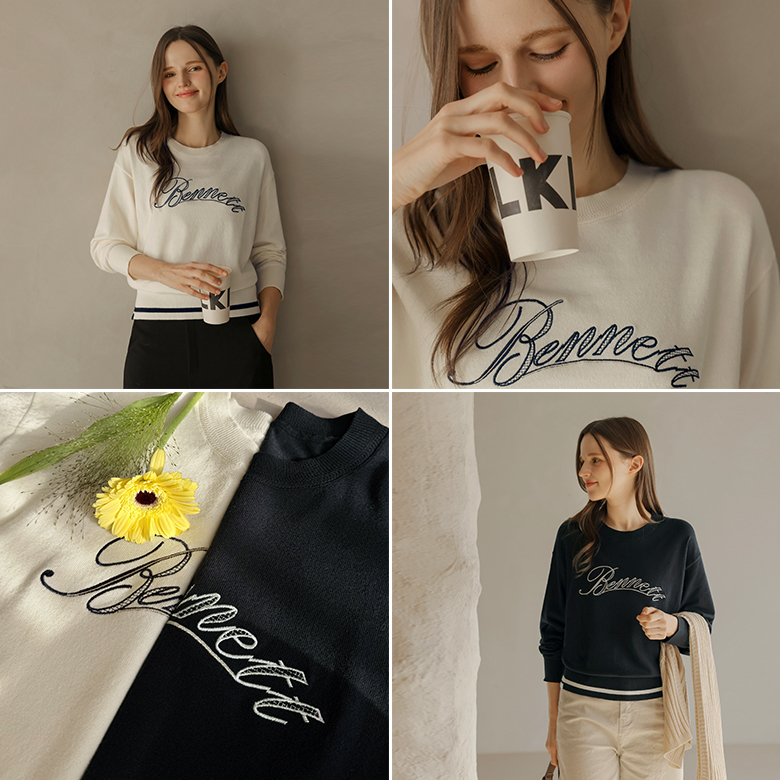 [뮤즈린] 벤트 레터링 자수 니트