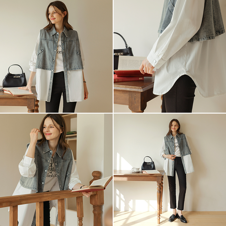 [뮤즈린] 토엔 데님배색 셔츠 자켓