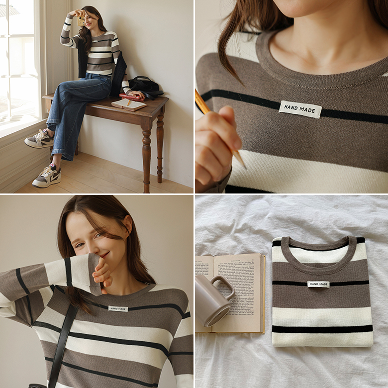 [뮤즈린] 노마 핸드메이드 단가라 배색 니트