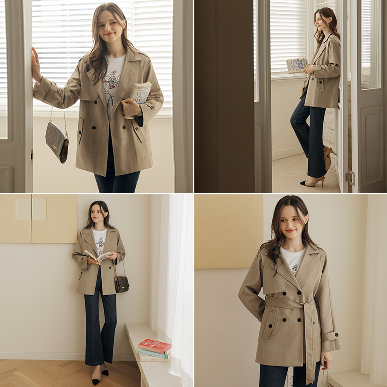 [뮤즈린] [끈set] 부티 더블버튼 트렌치 자켓