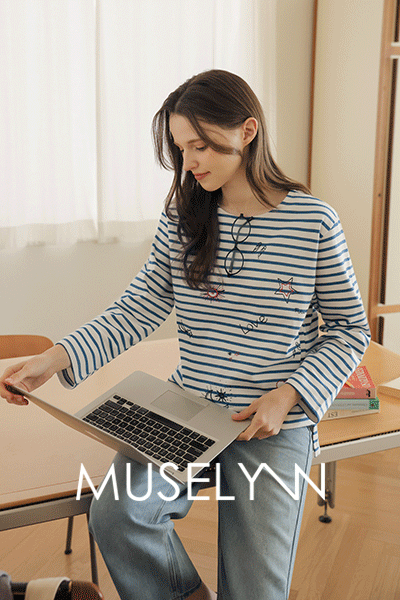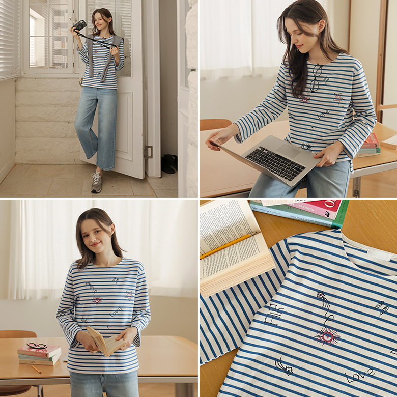 [뮤즈린] 러브썬 자수 스트라이프 티셔츠