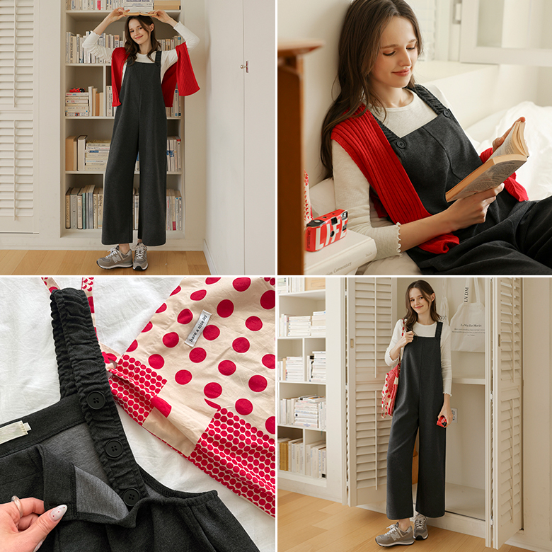 [뮤즈린] 포비 버튼 멜빵 점프수트
