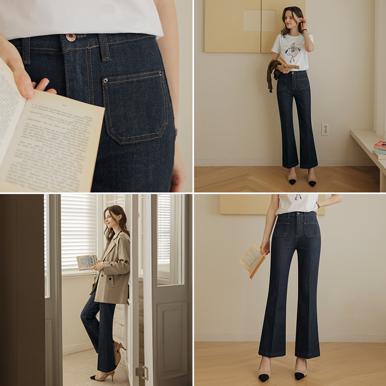 [뮤즈린] 앤느 포켓 부츠컷 데님팬츠 [밴딩]