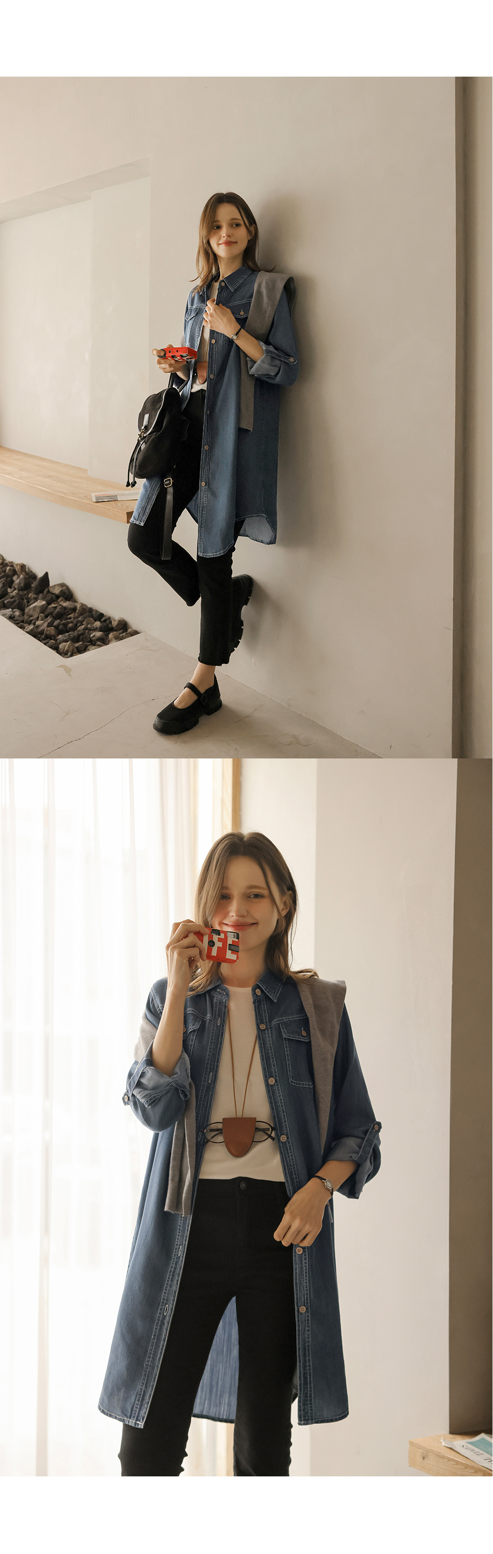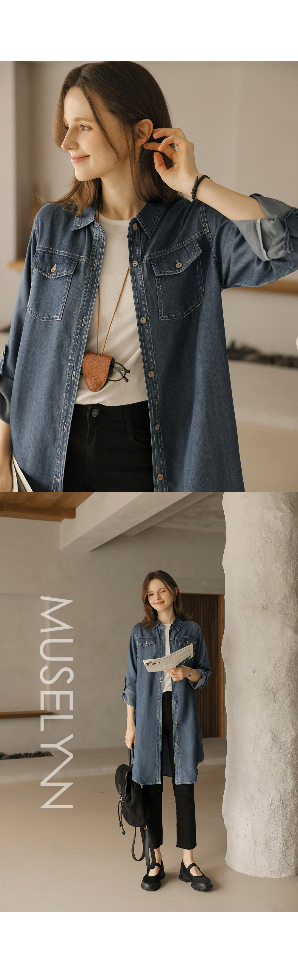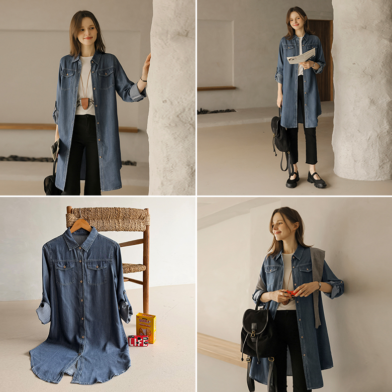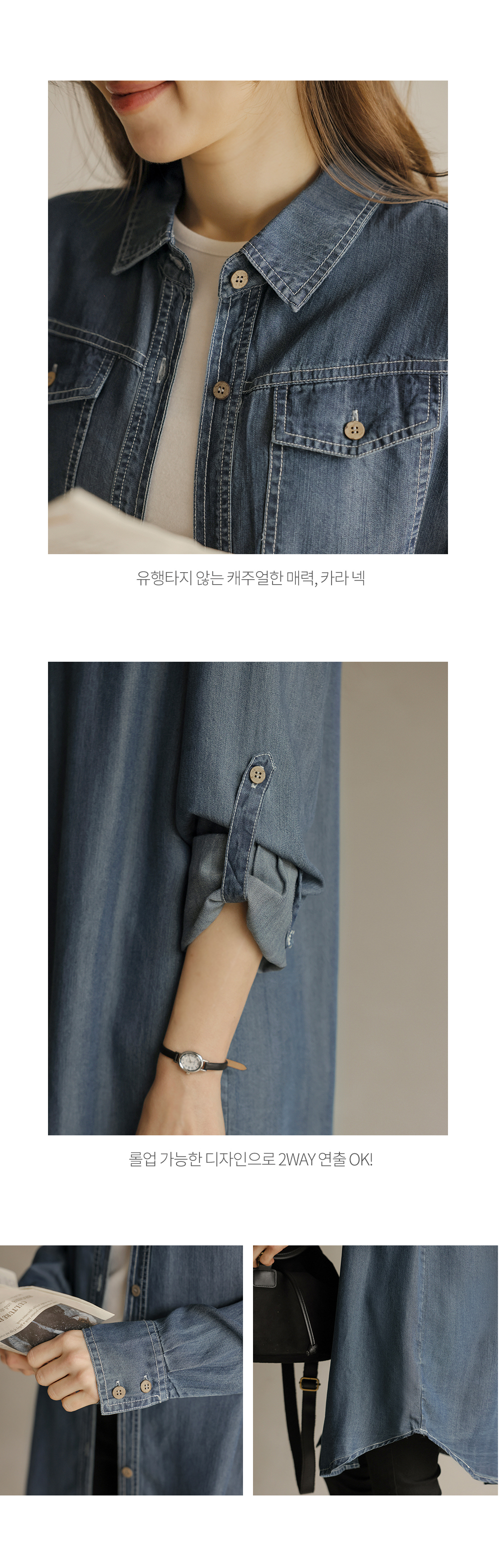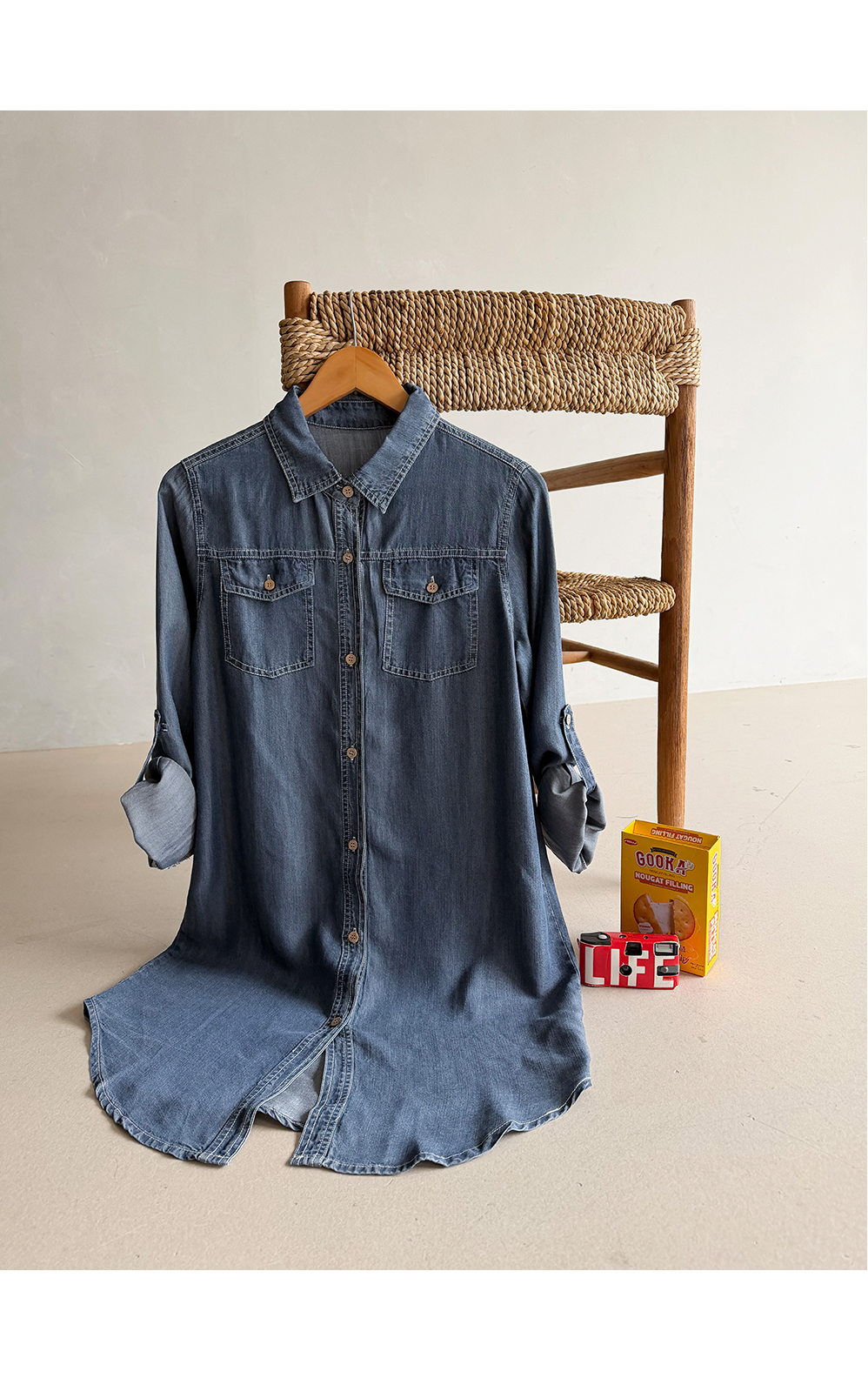 [뮤즈린] [롤업] 로아드 데님 롱 셔츠