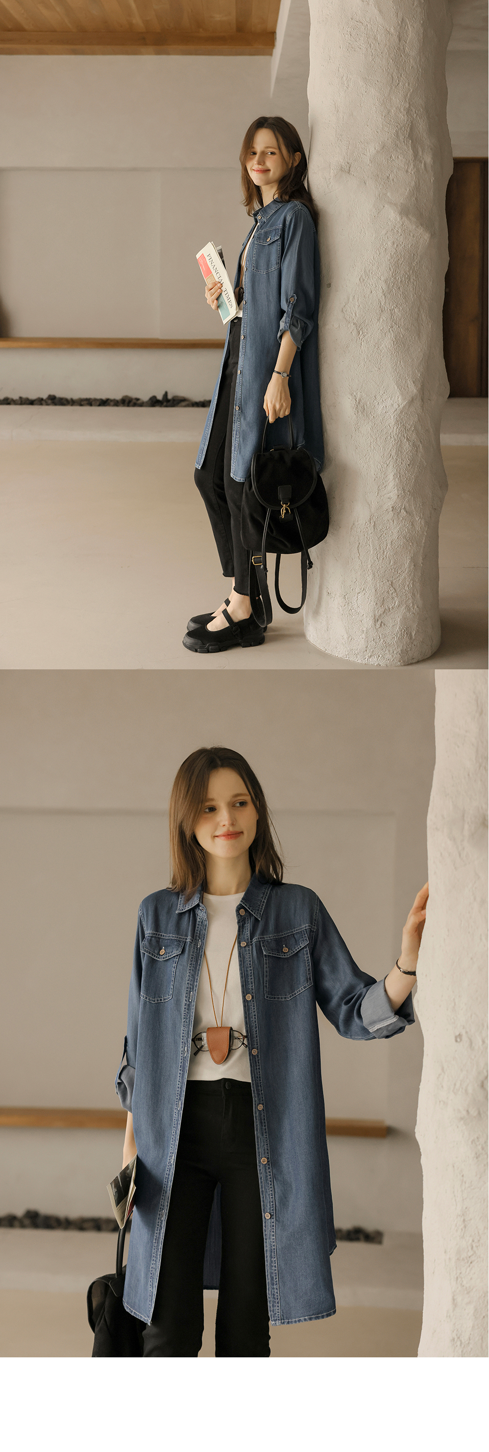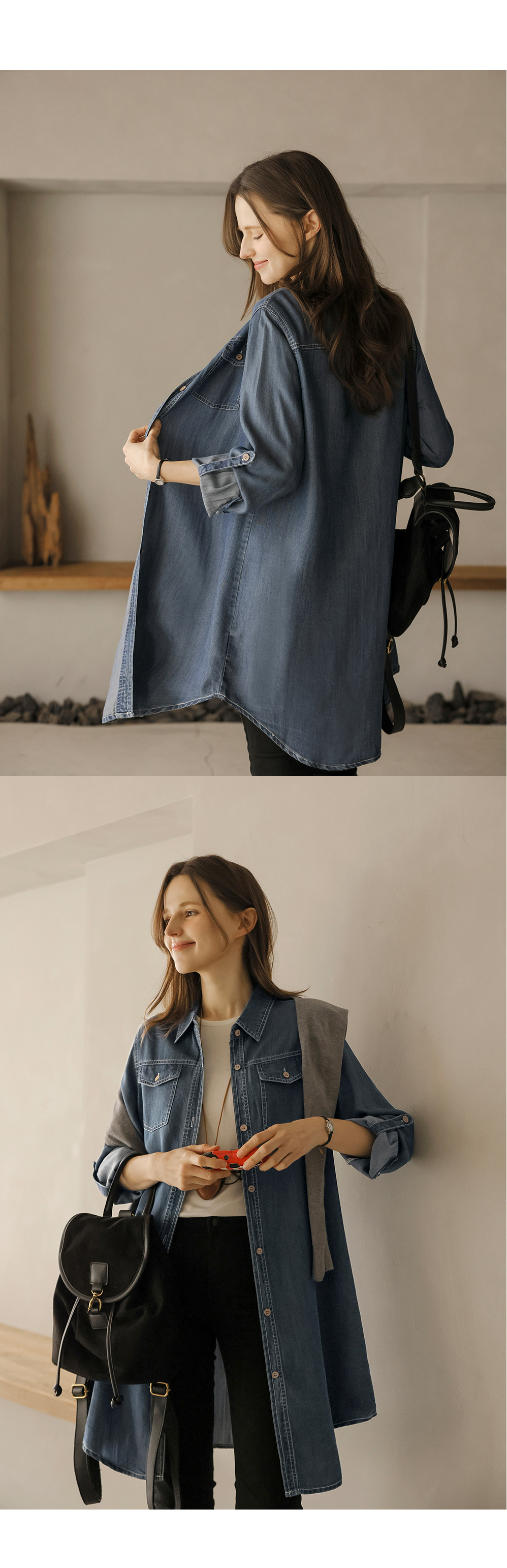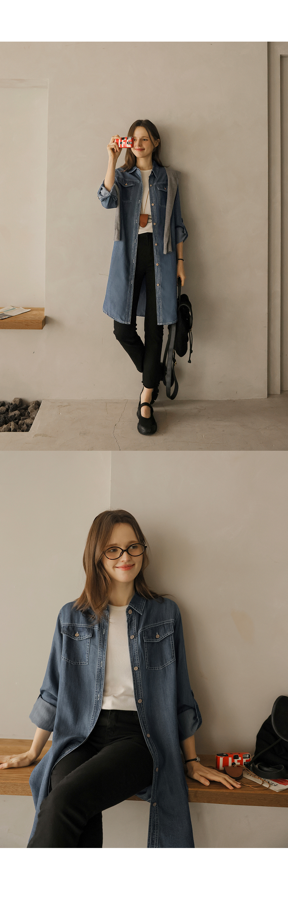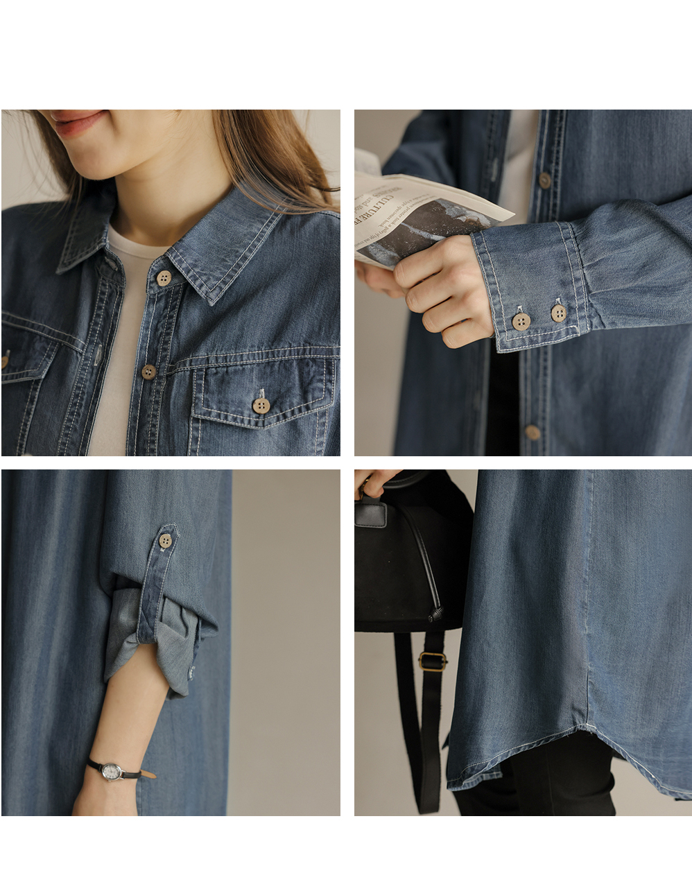 [뮤즈린] [롤업] 로아드 데님 롱 셔츠