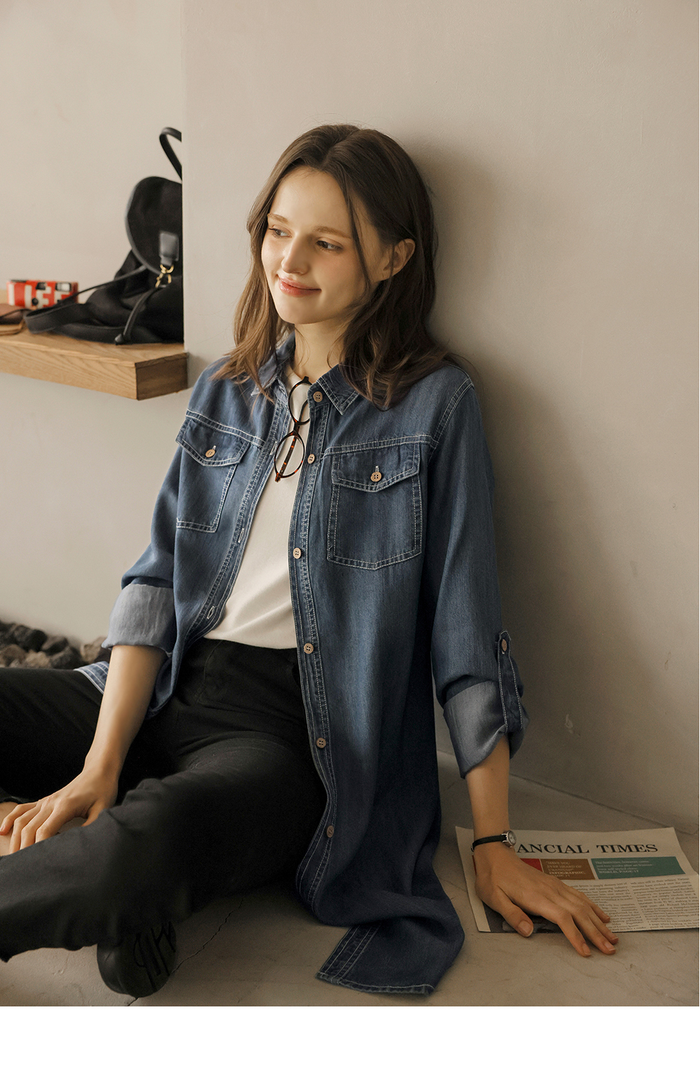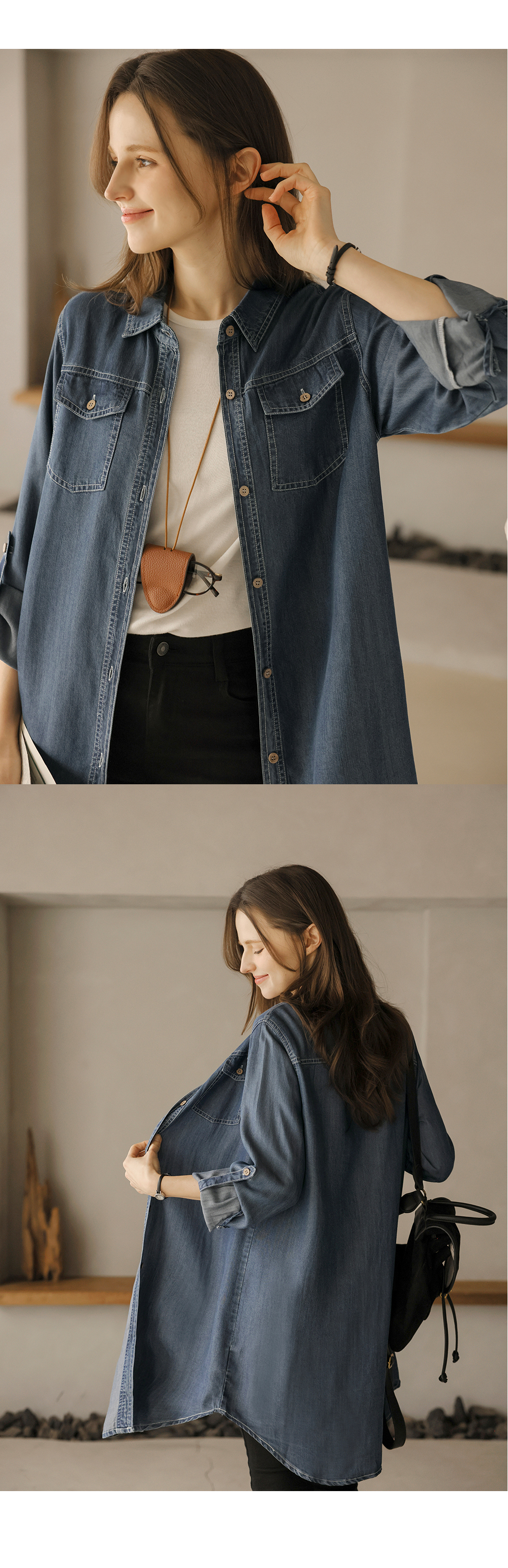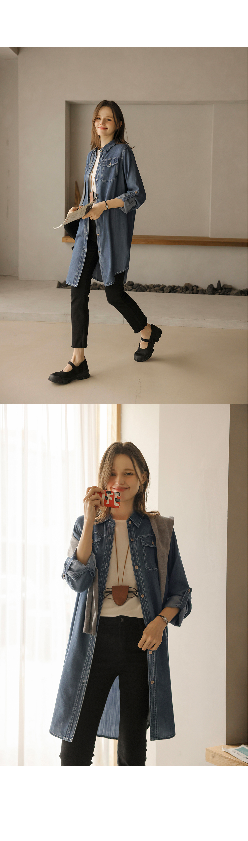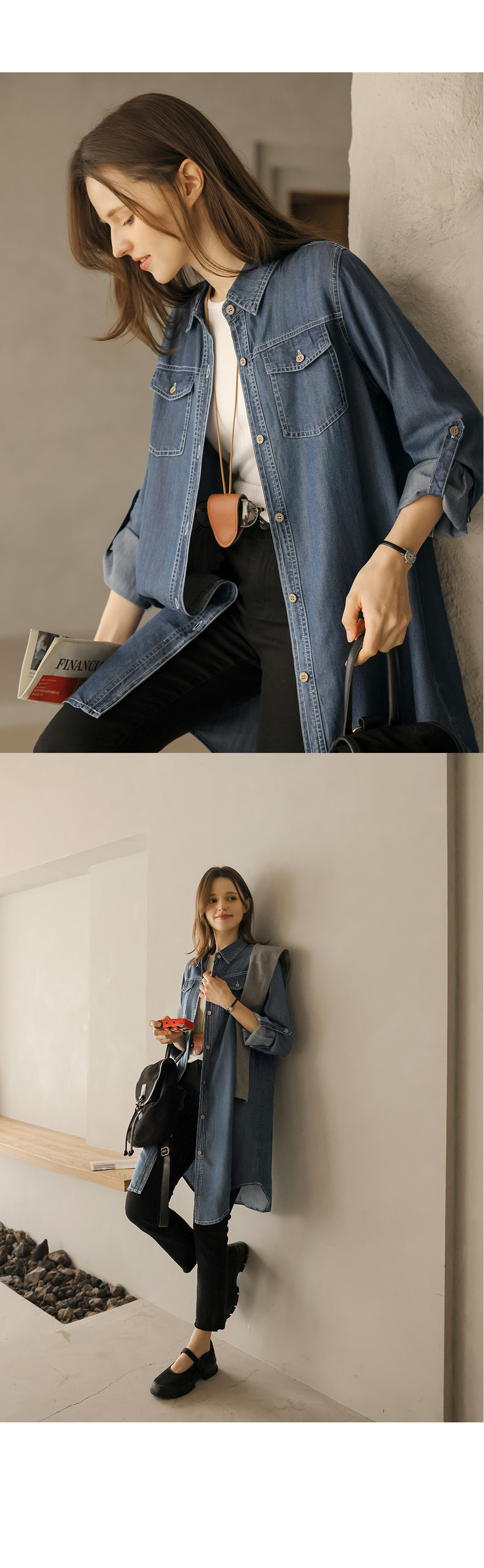 [뮤즈린] [롤업] 로아드 데님 롱 셔츠