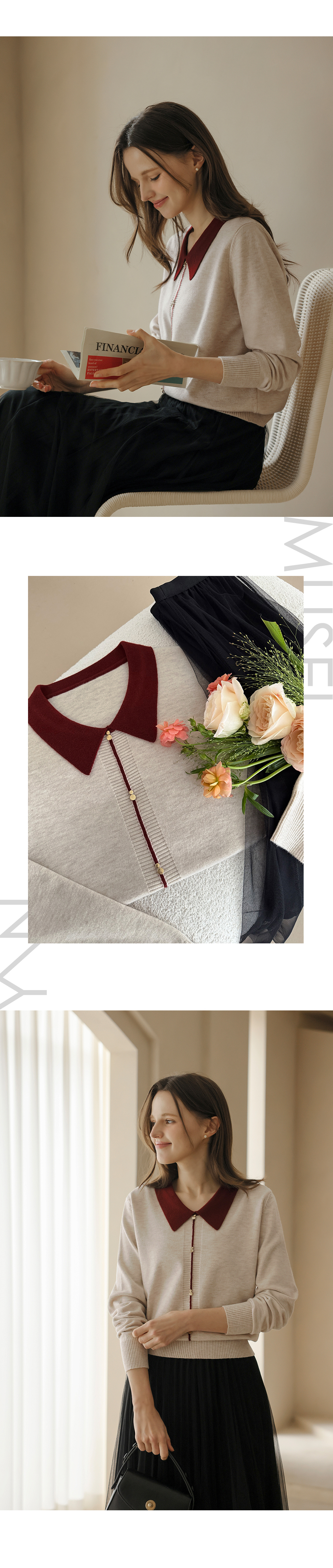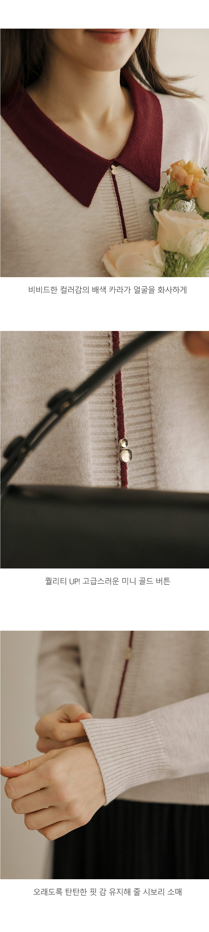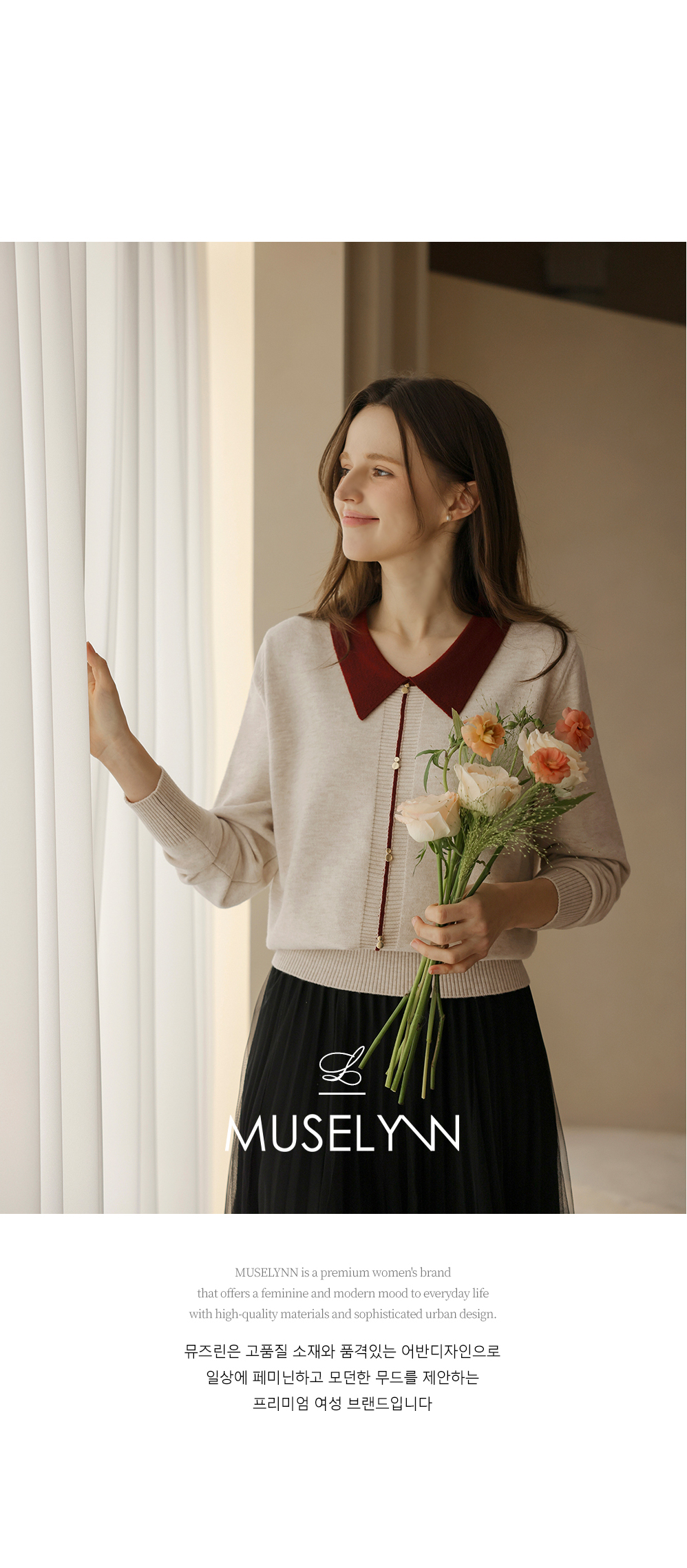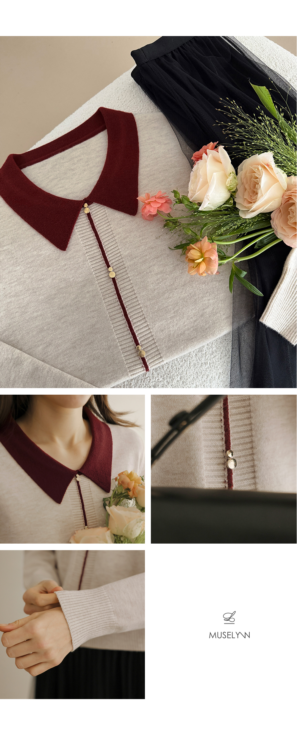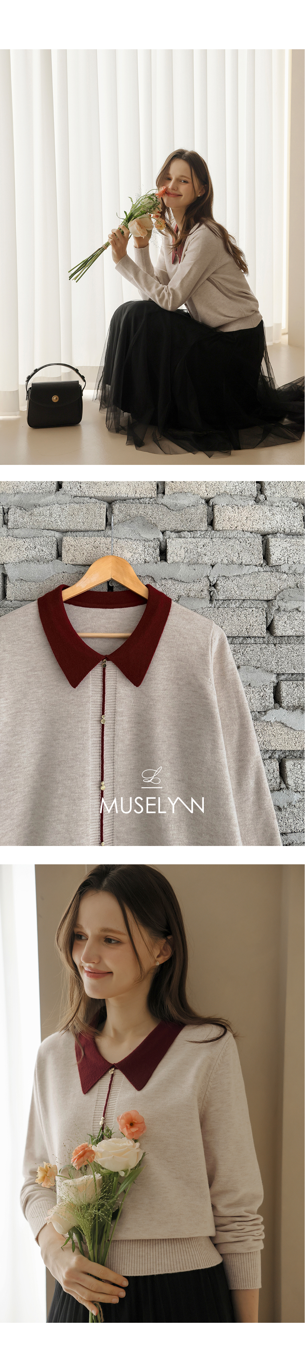 [뮤즈린] 셀리온 골드버튼 카라 배색 니트