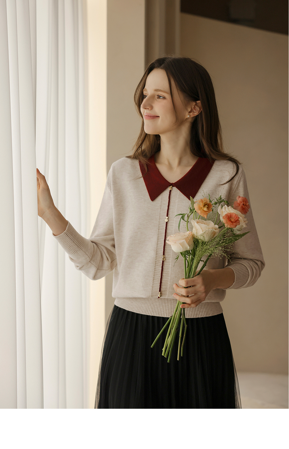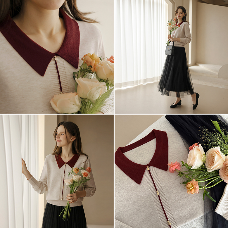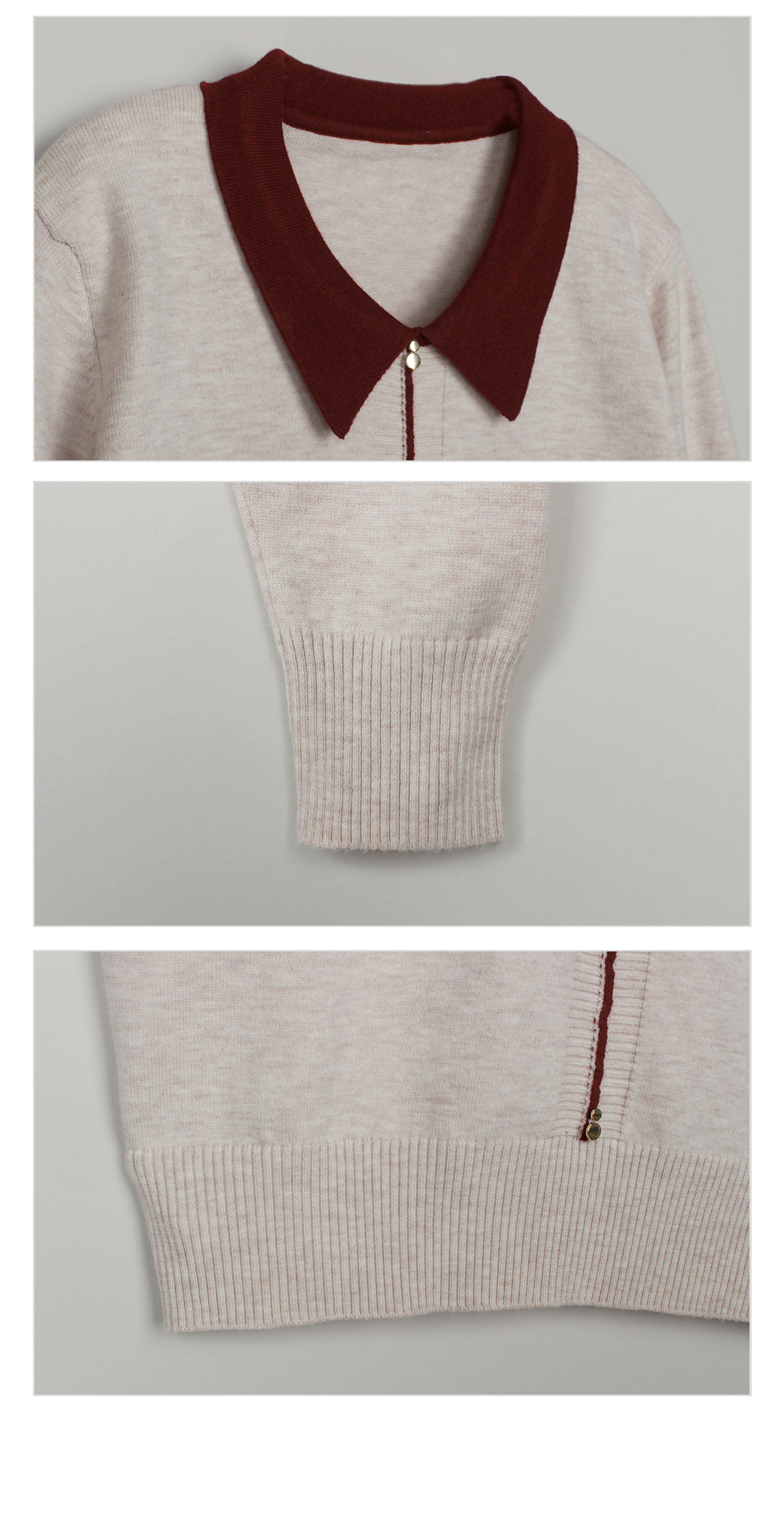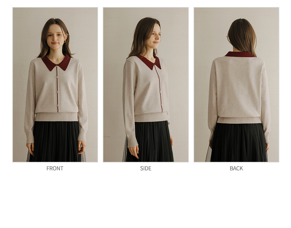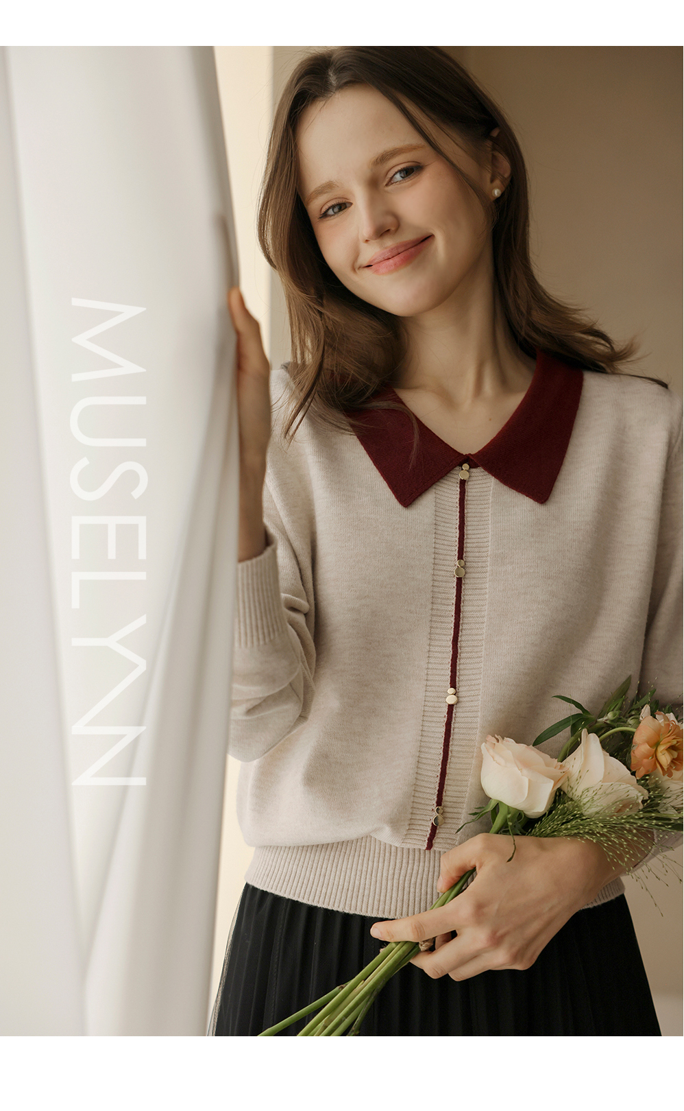 [뮤즈린] 셀리온 골드버튼 카라 배색 니트