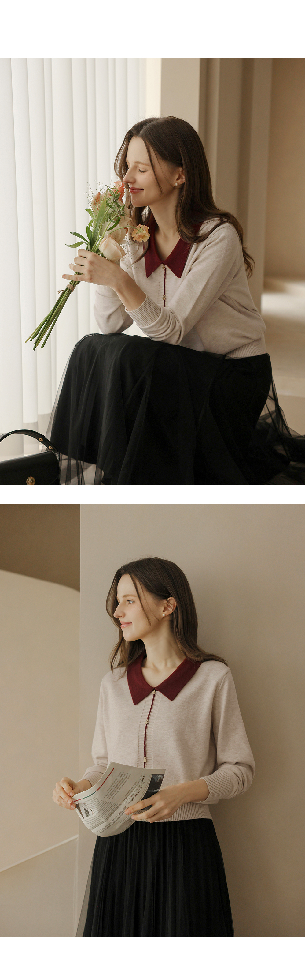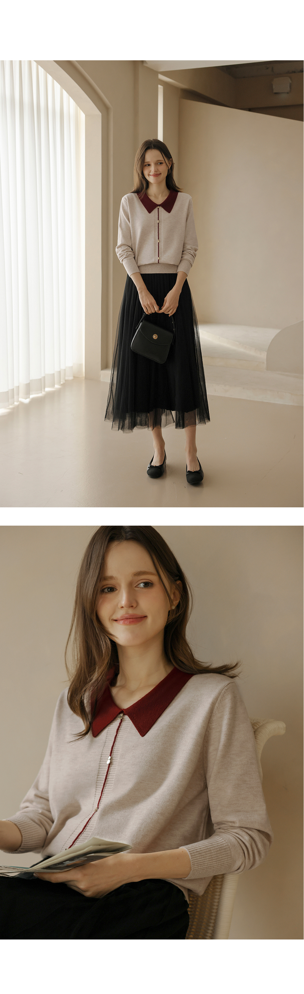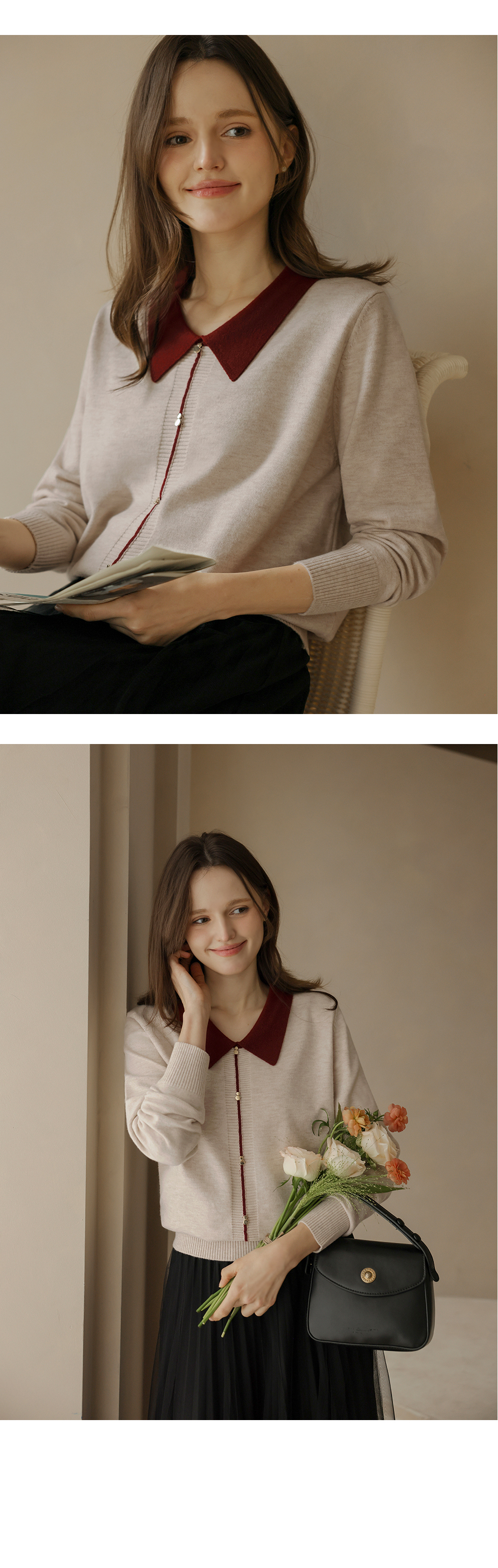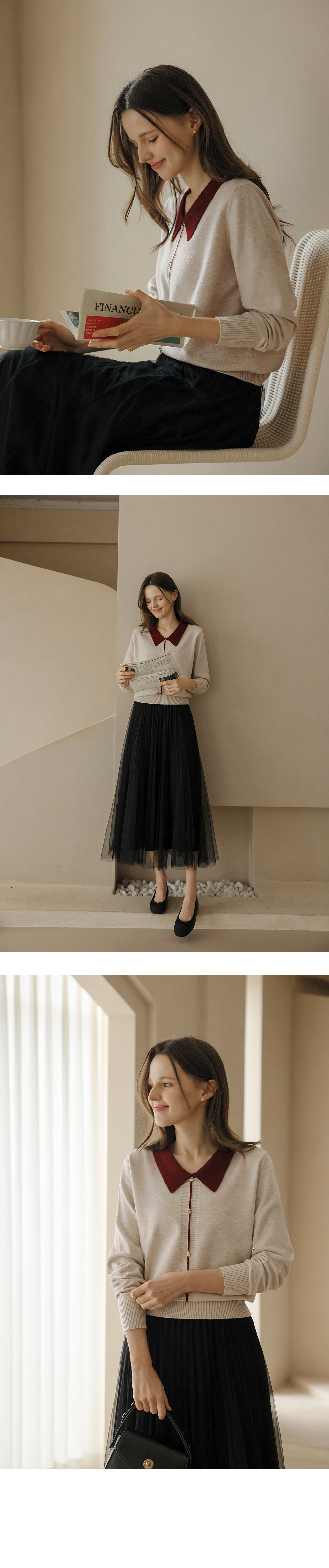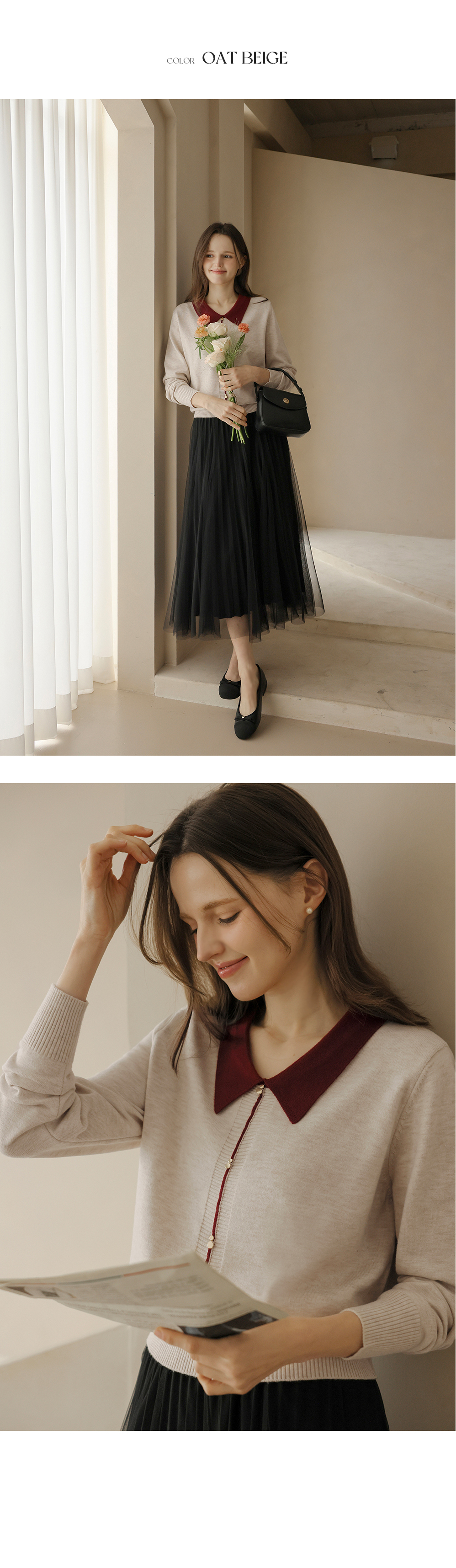 [뮤즈린] 셀리온 골드버튼 카라 배색 니트