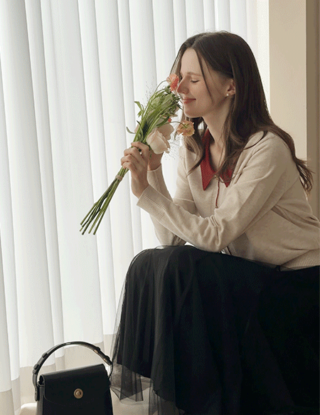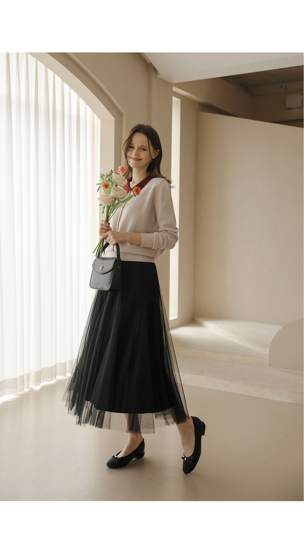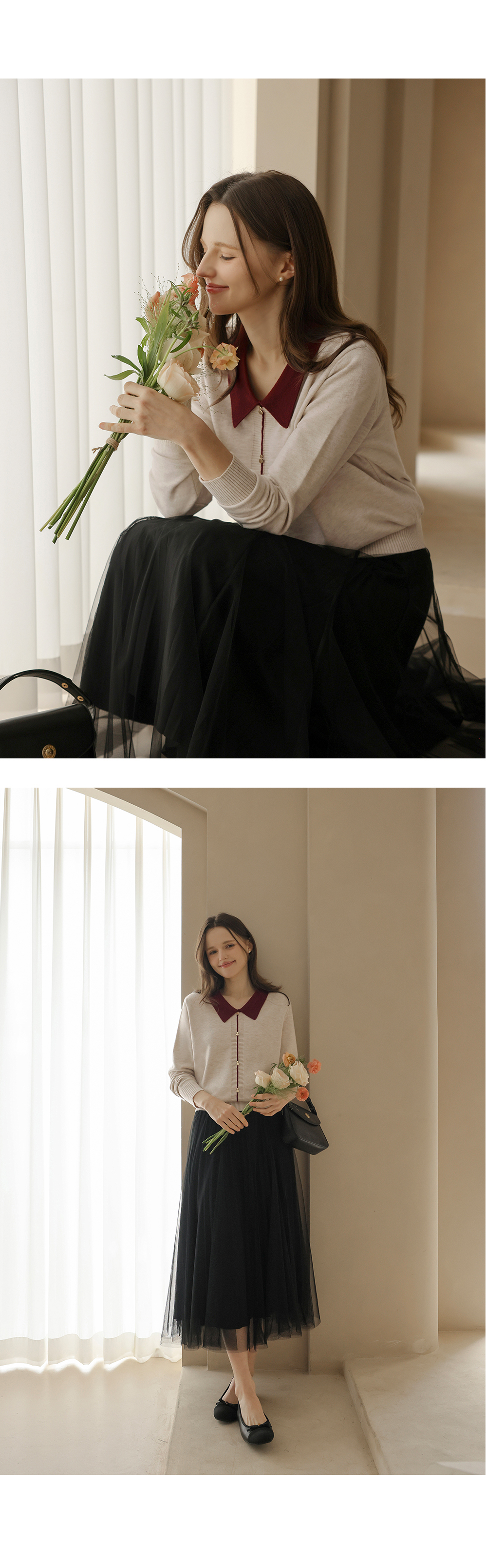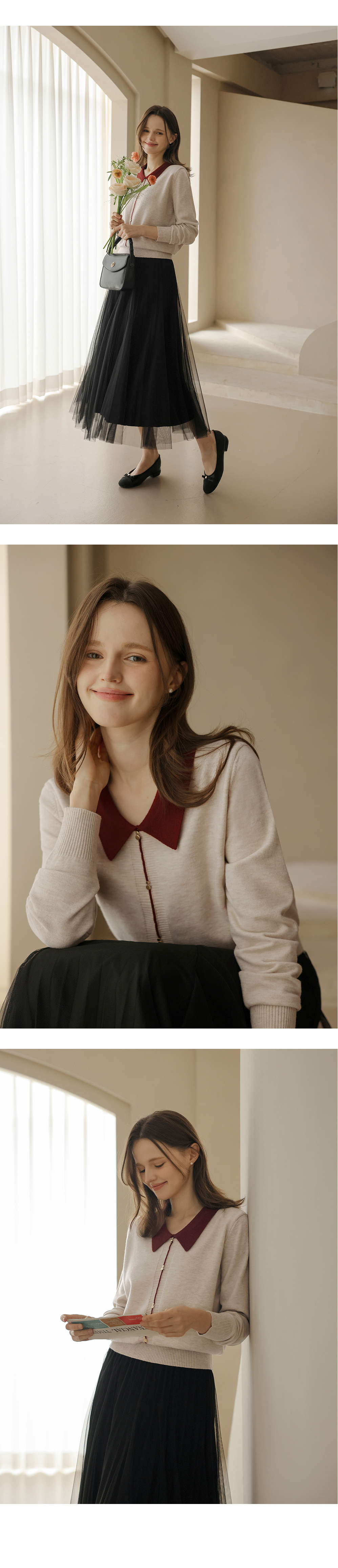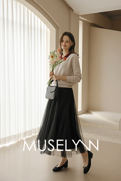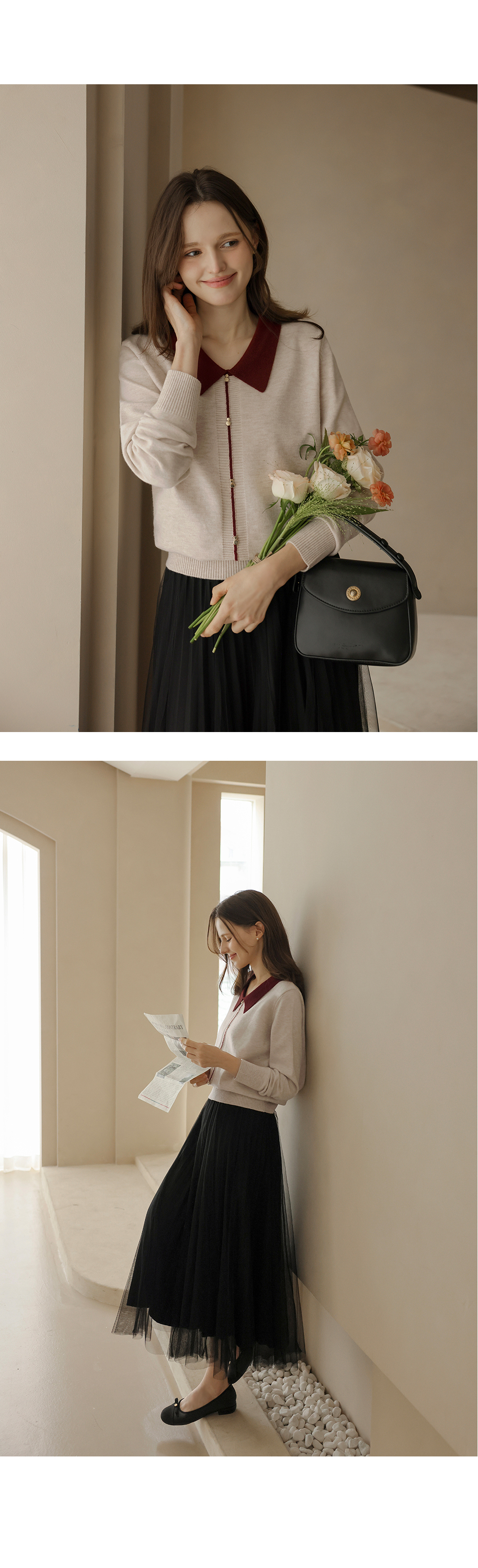 [뮤즈린] 셀리온 골드버튼 카라 배색 니트