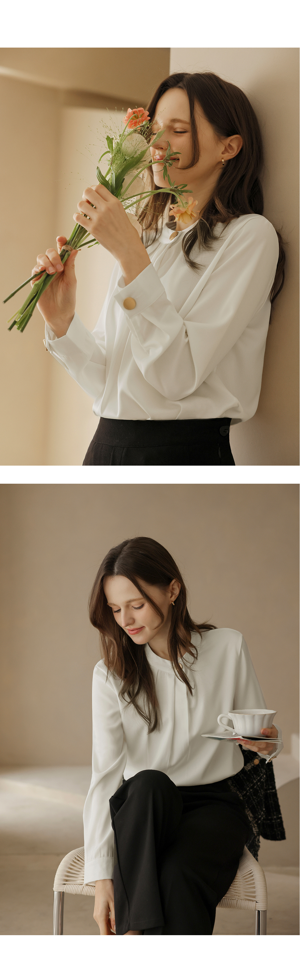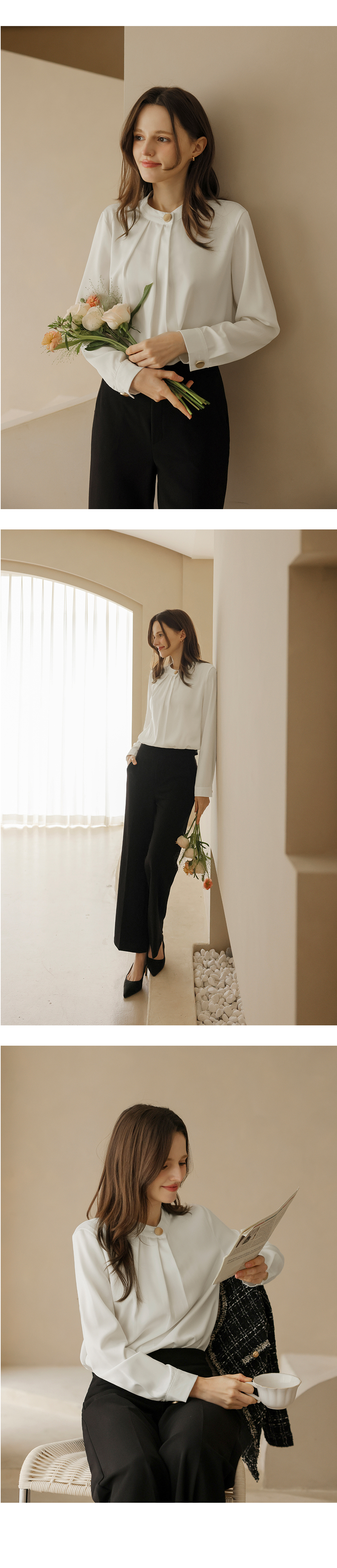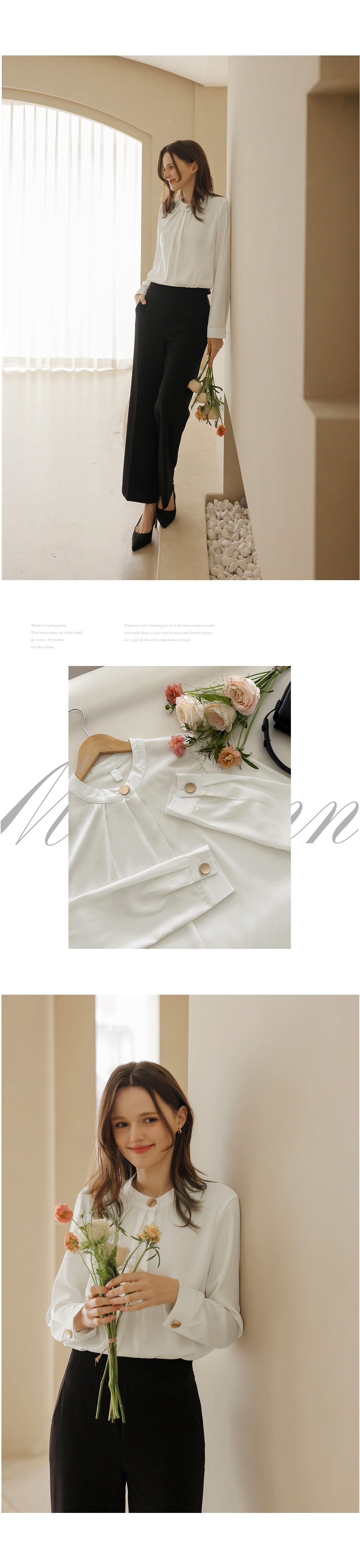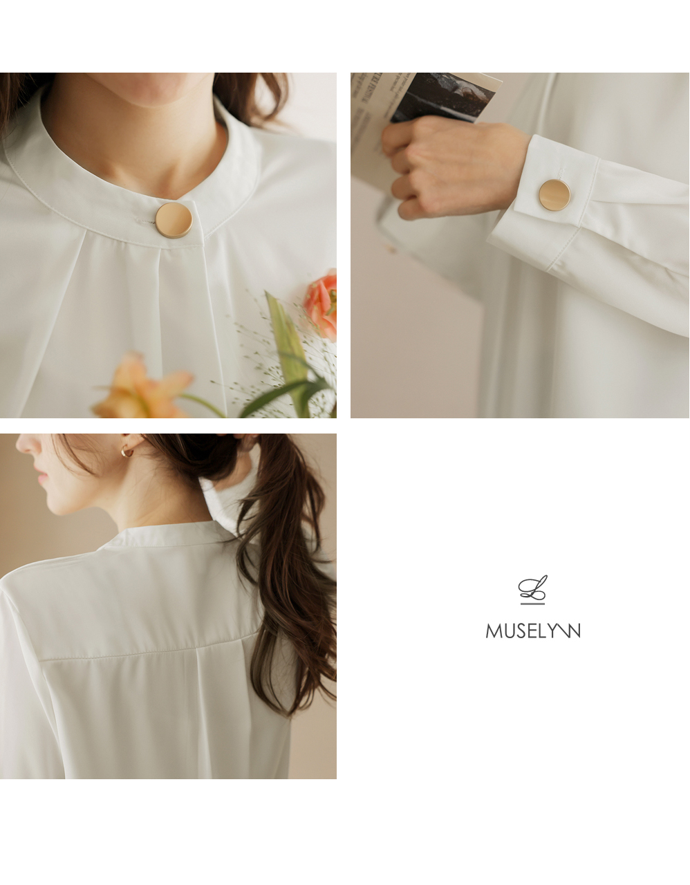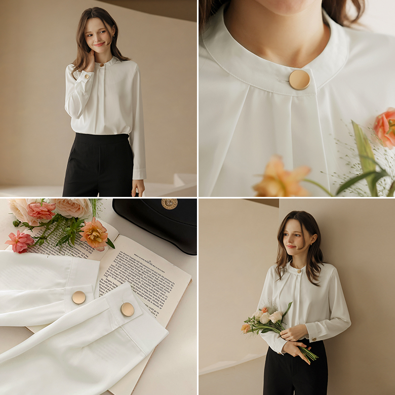 [뮤즈린] 나일 골드버튼 핀턱 블라우스