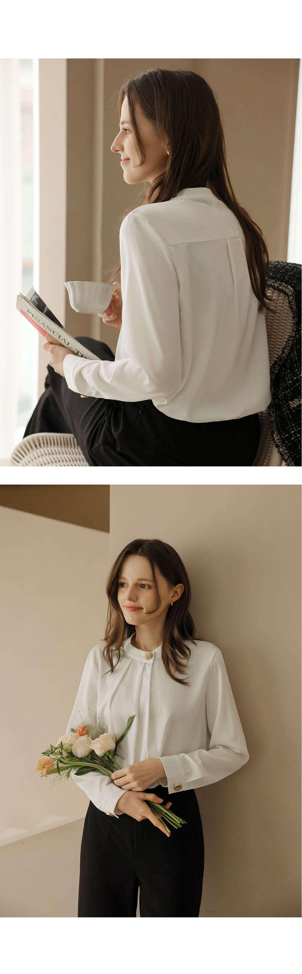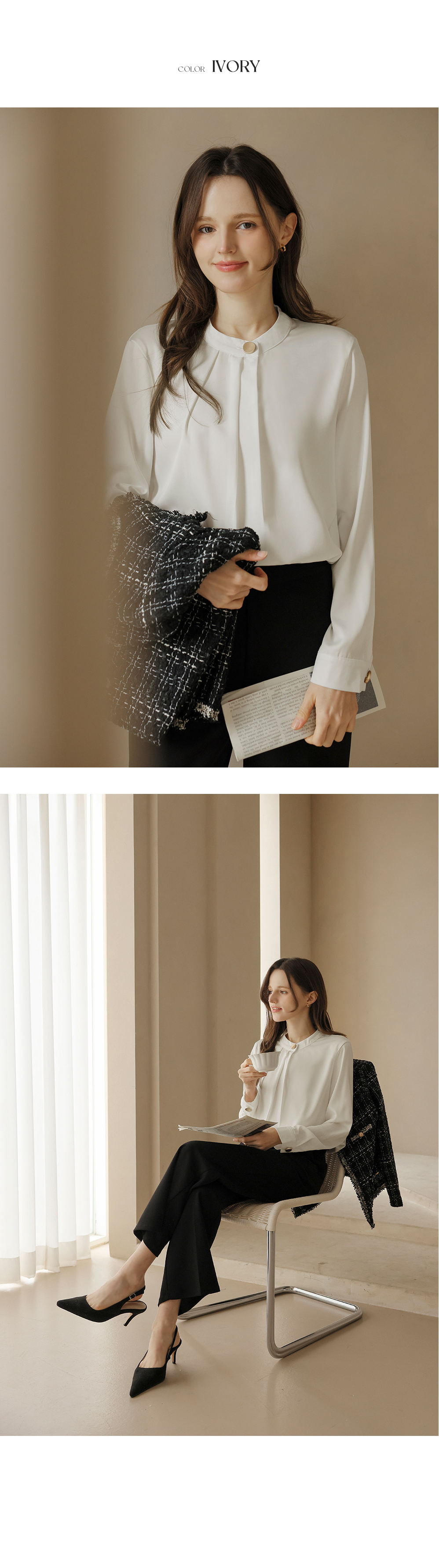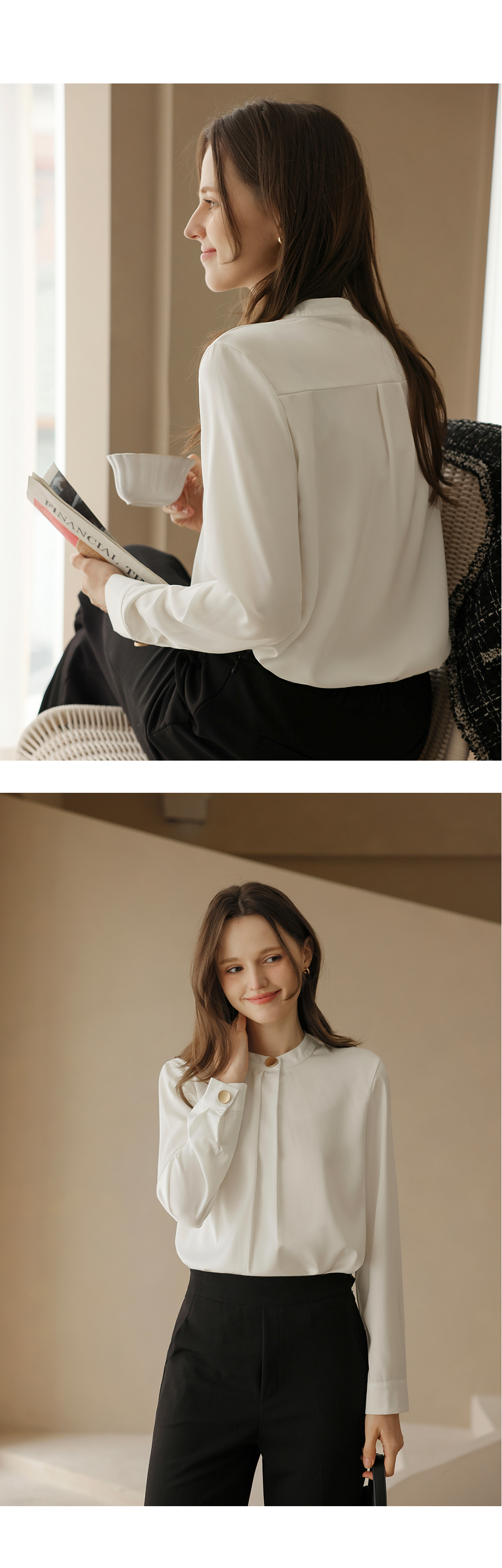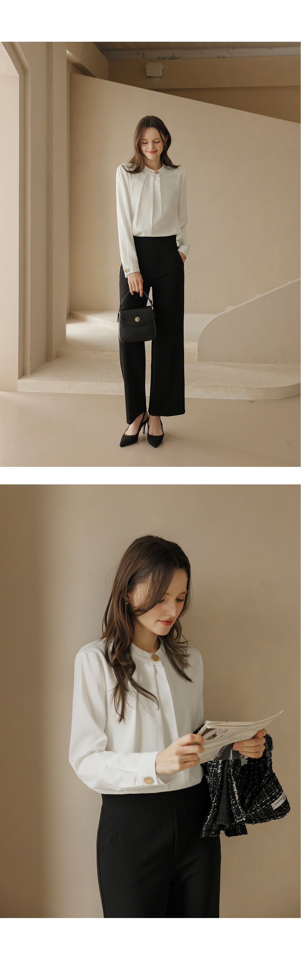 [뮤즈린] 나일 골드버튼 핀턱 블라우스
