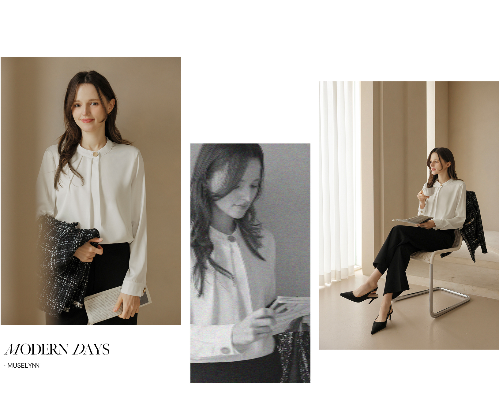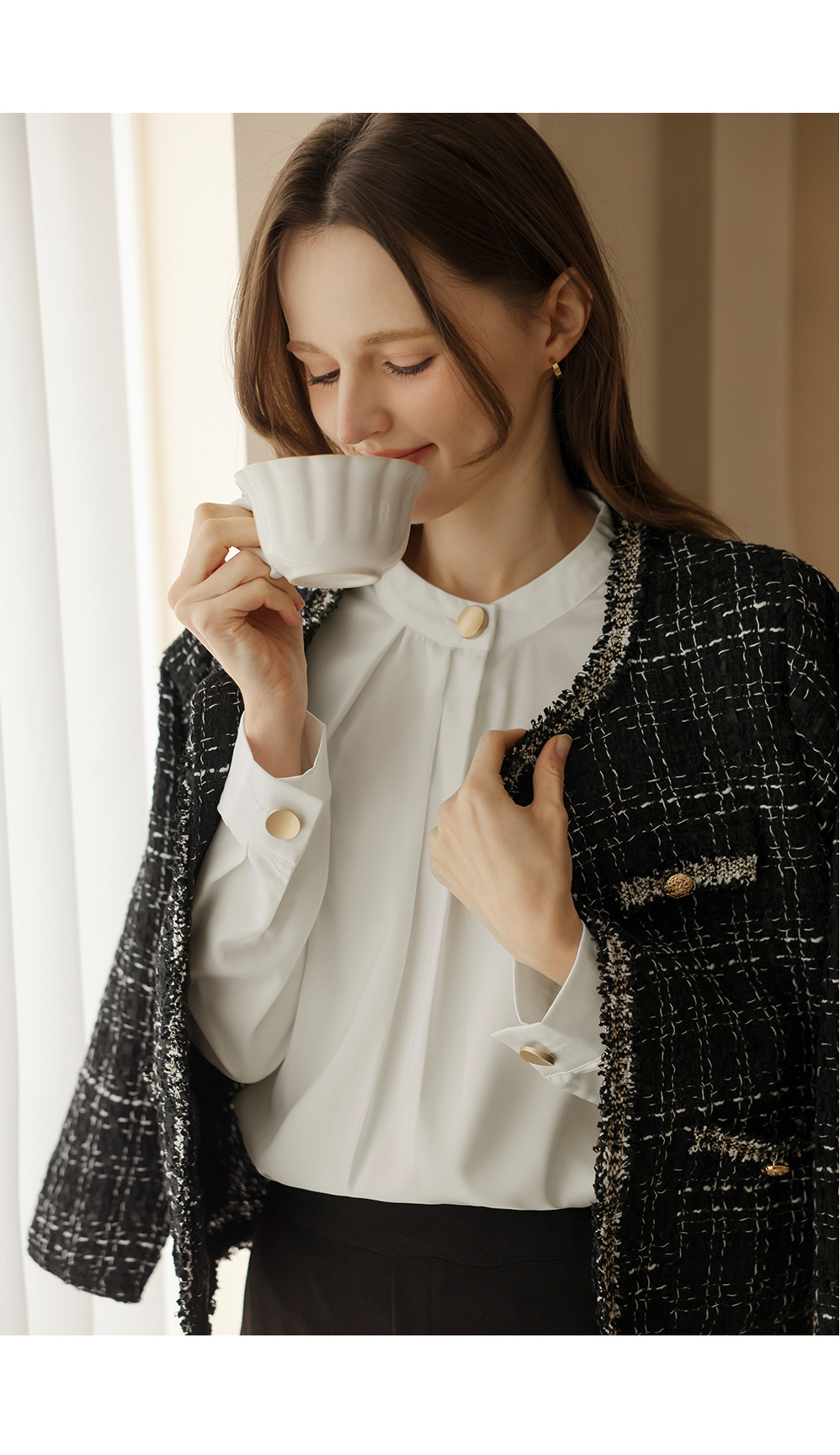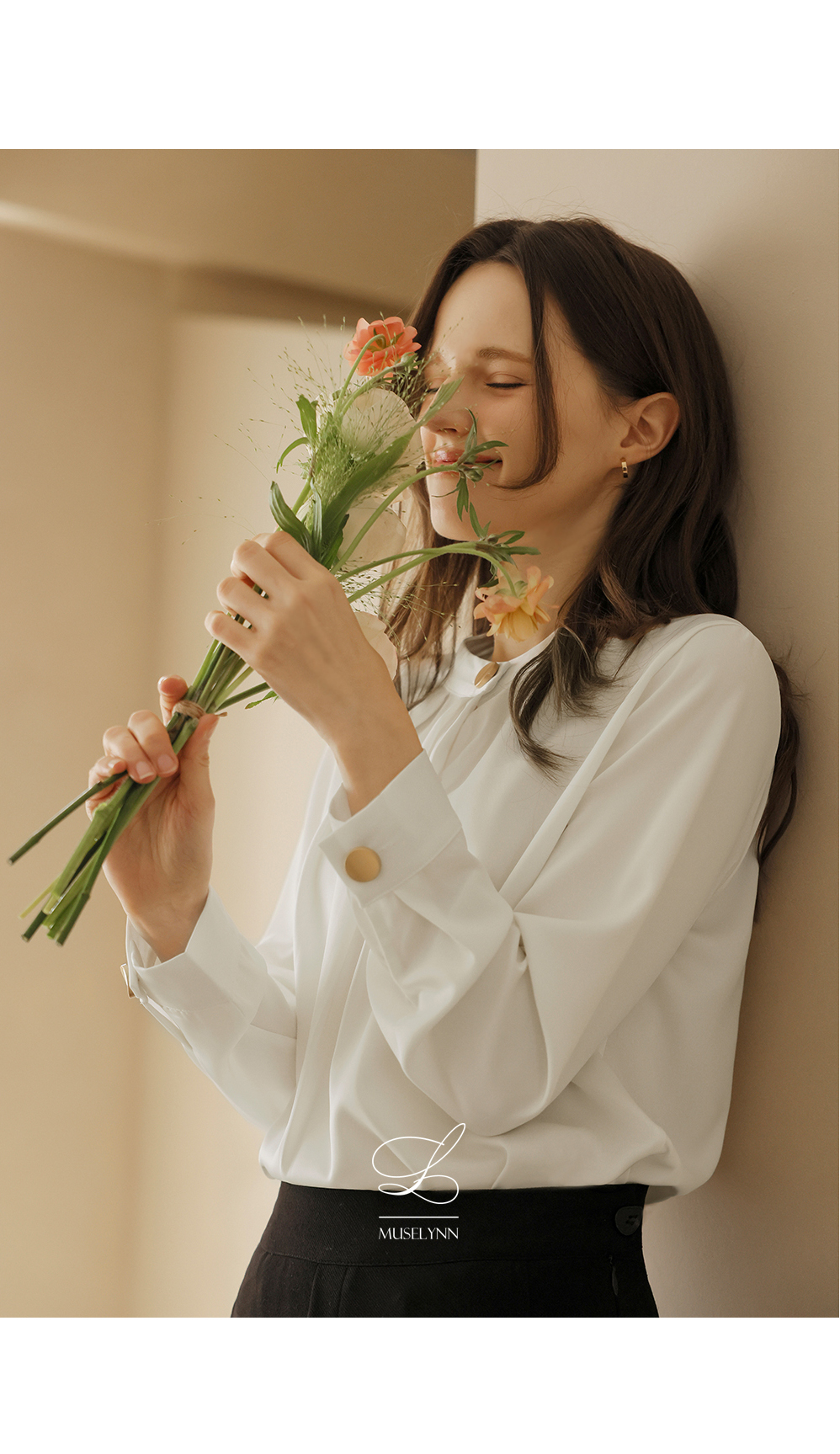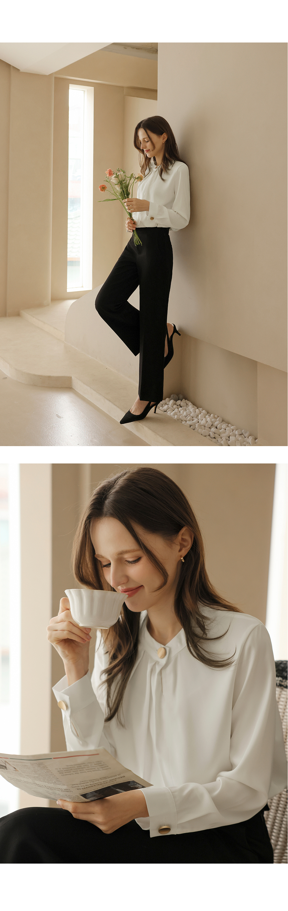 [뮤즈린] 나일 골드버튼 핀턱 블라우스
