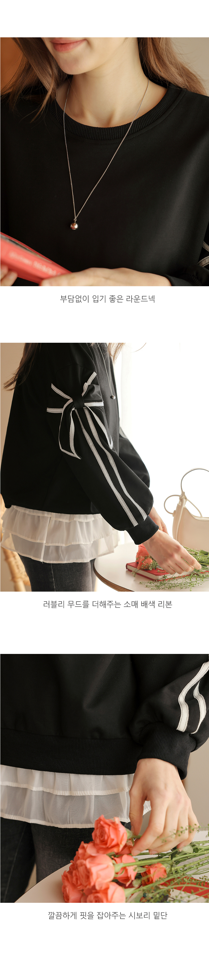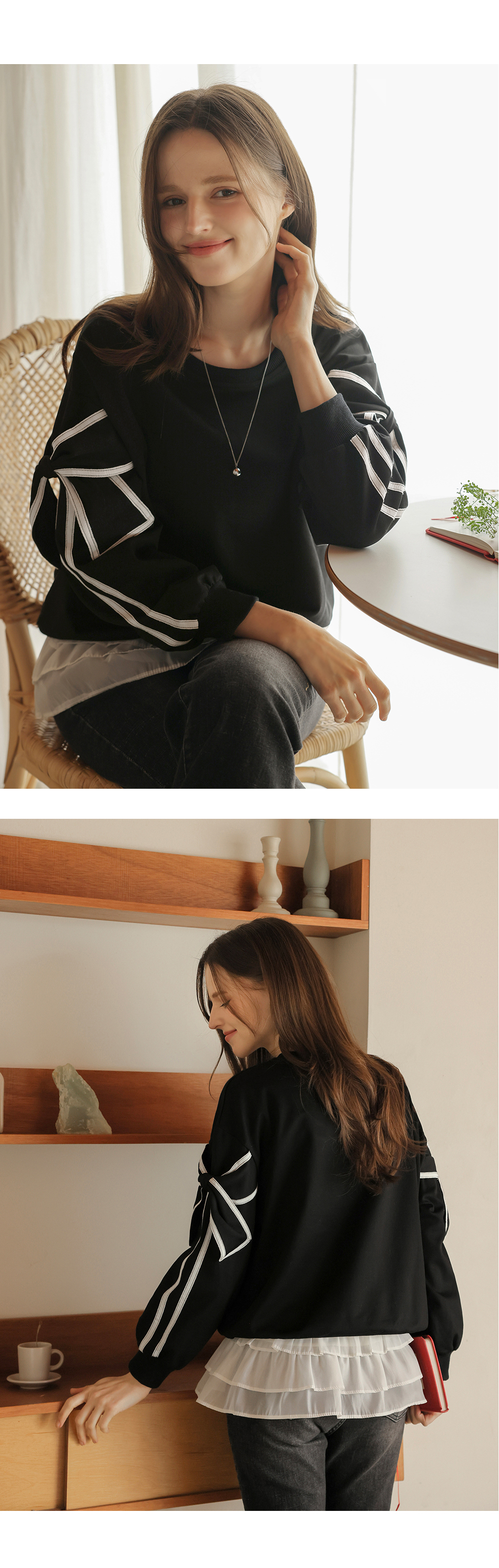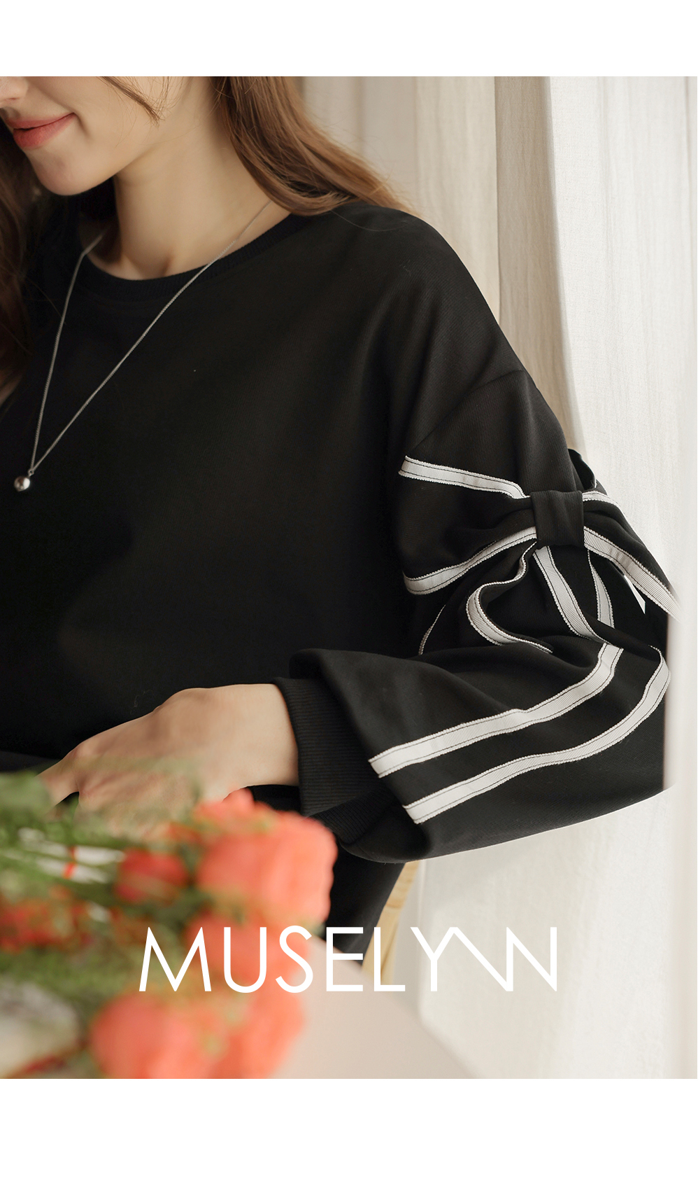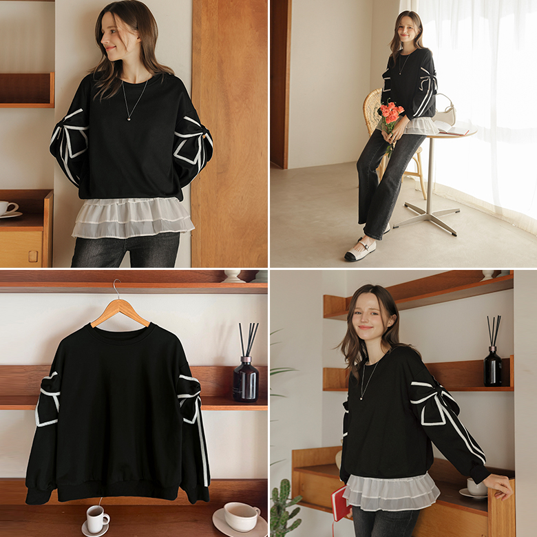 [뮤즈린] 지나 리본소매 맨투맨