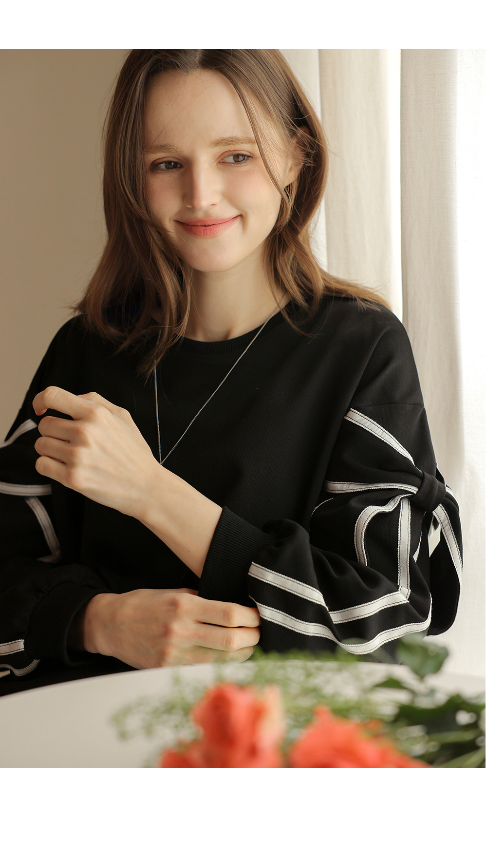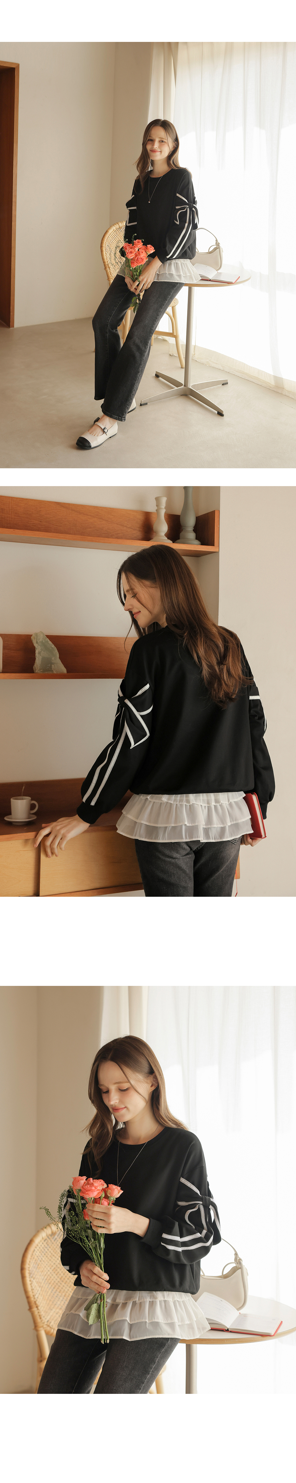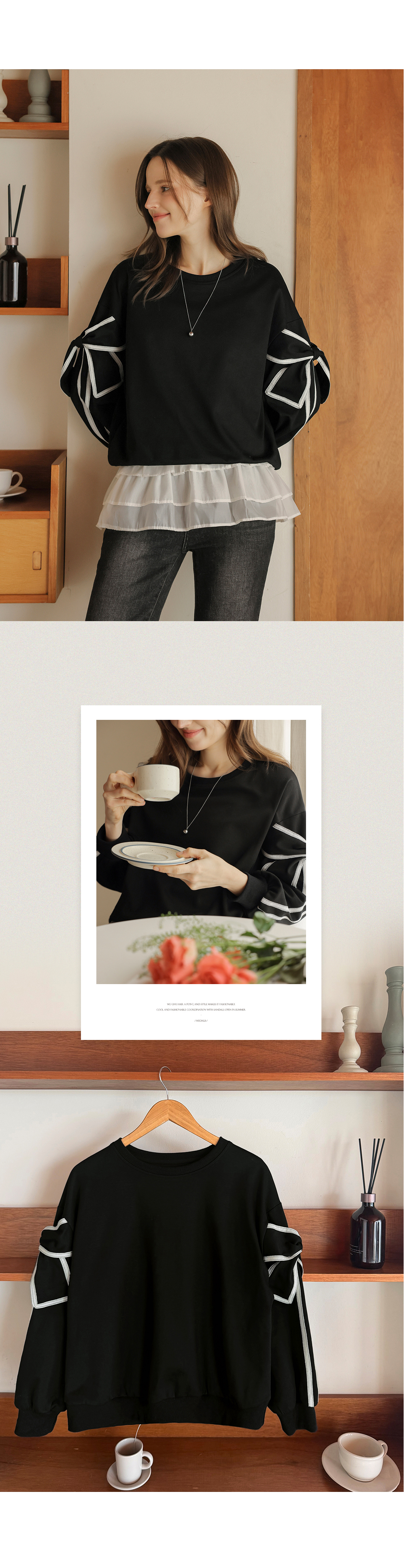 [뮤즈린] 지나 리본소매 맨투맨