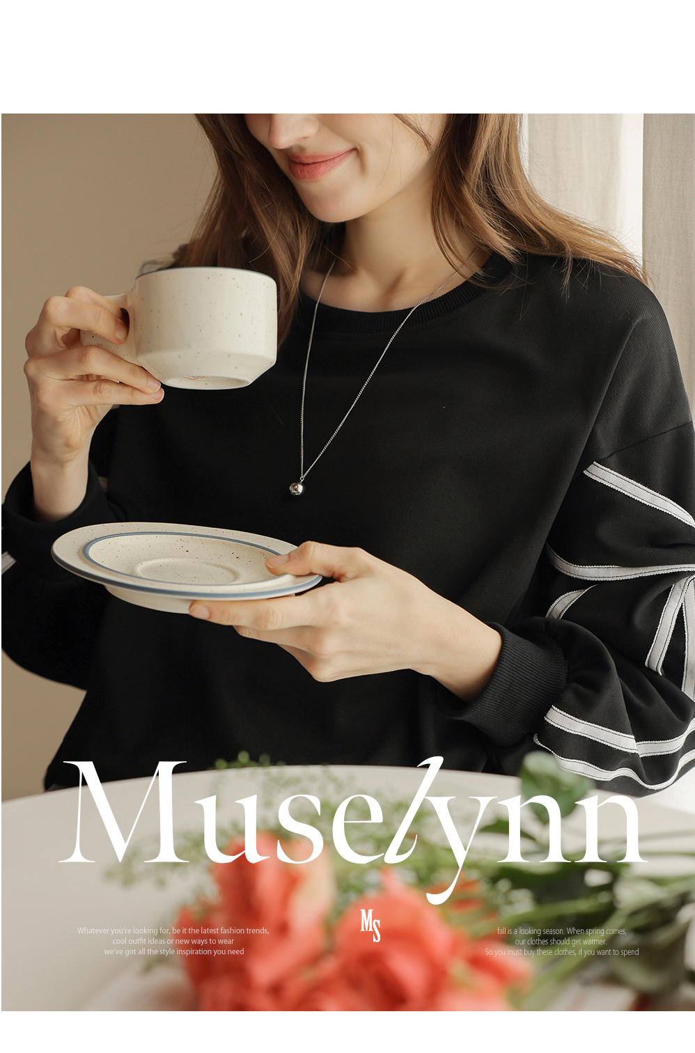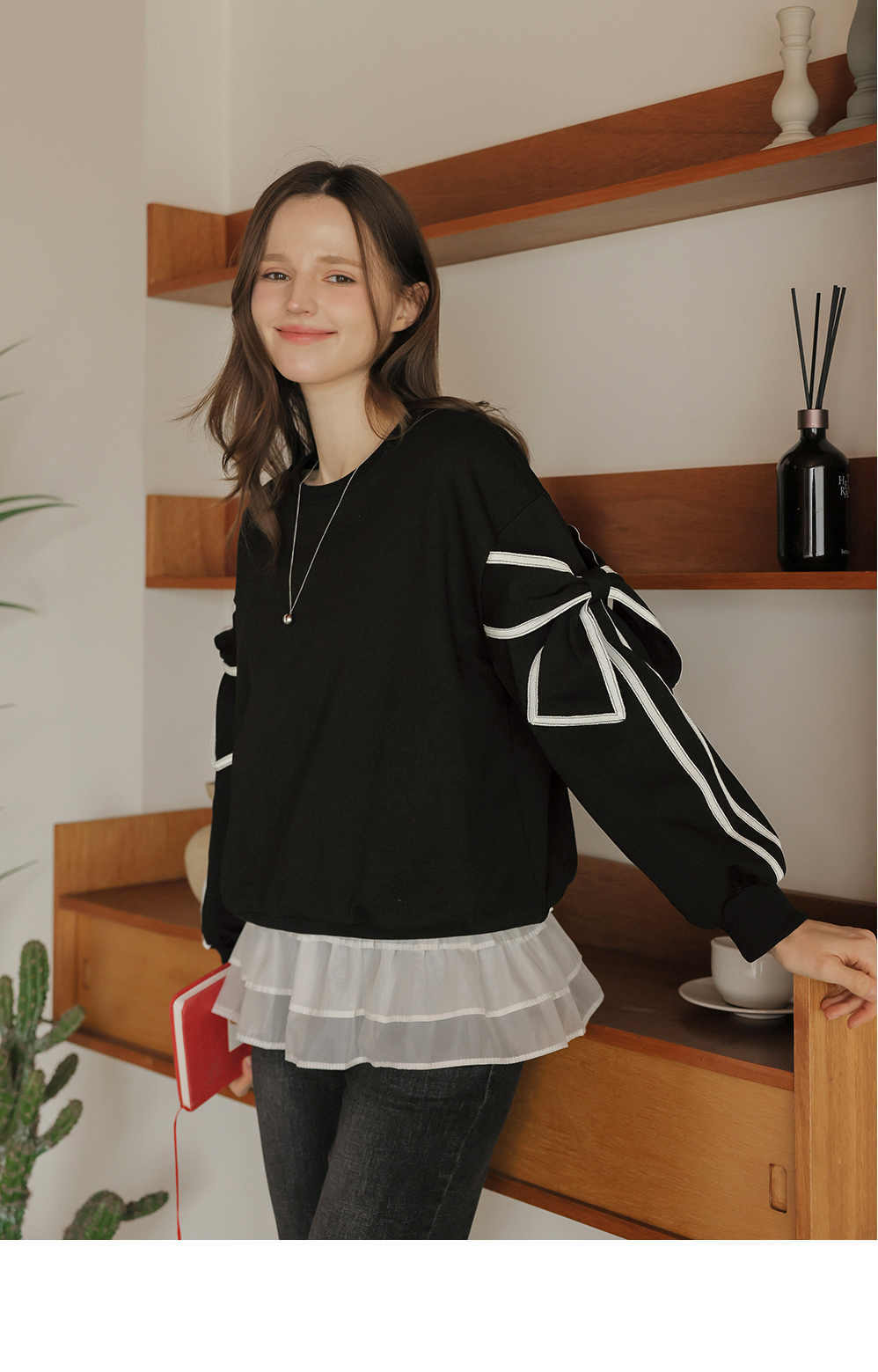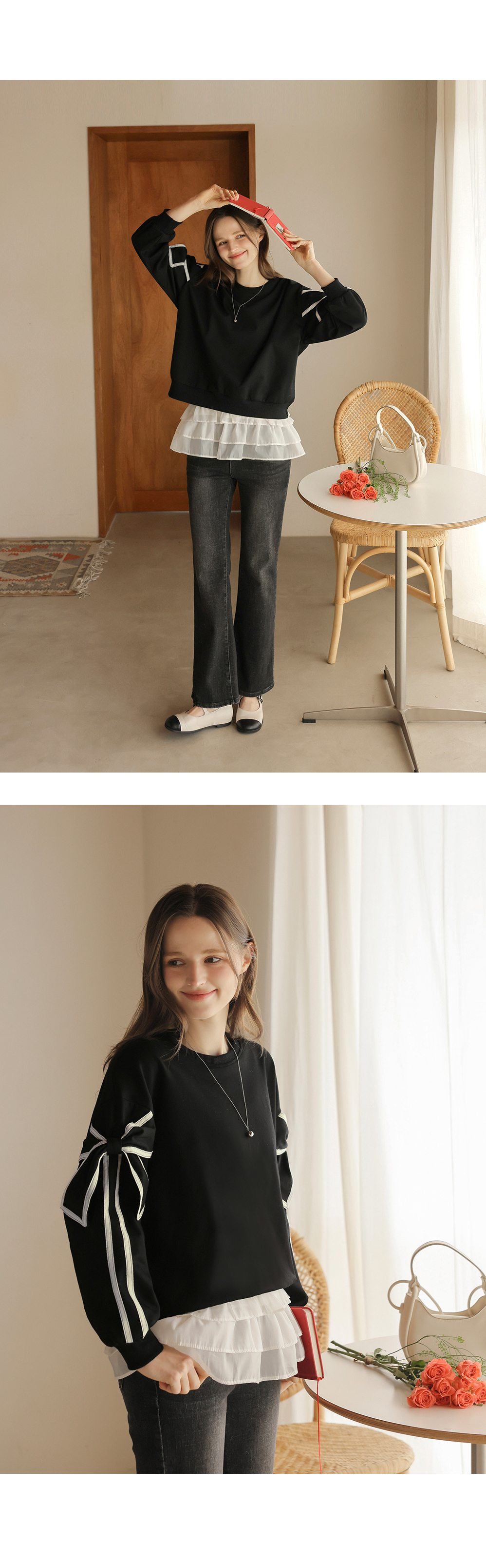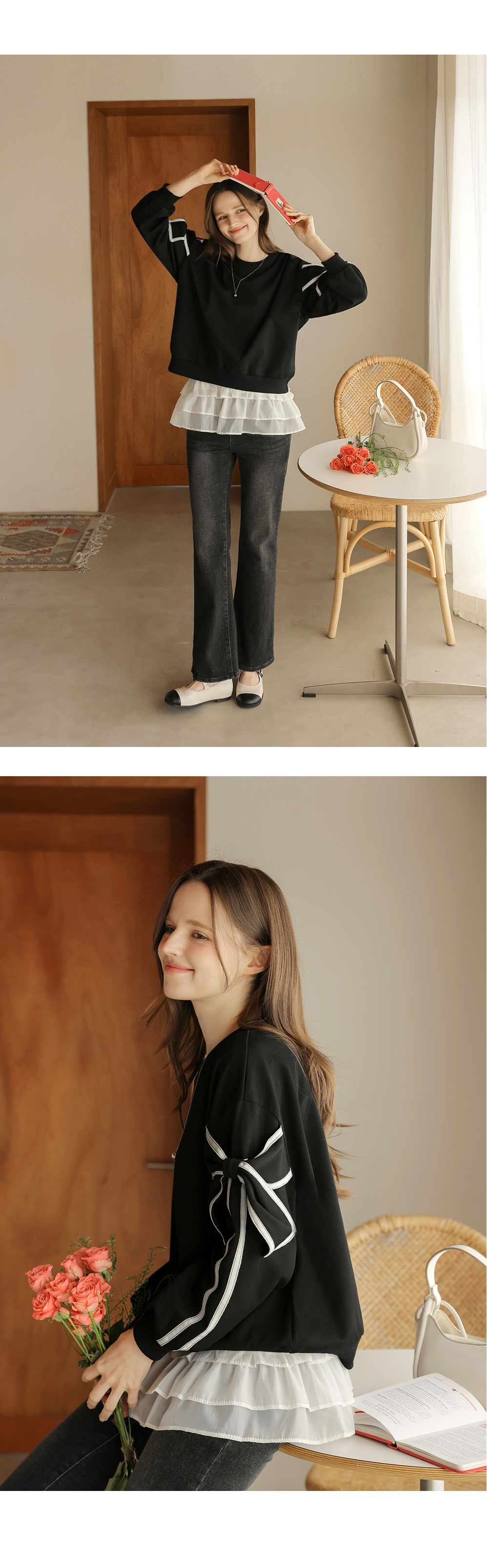 [뮤즈린] 지나 리본소매 맨투맨