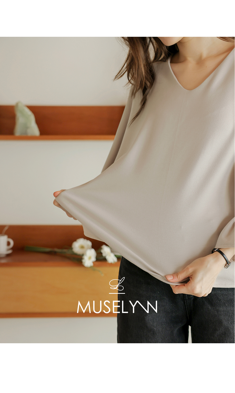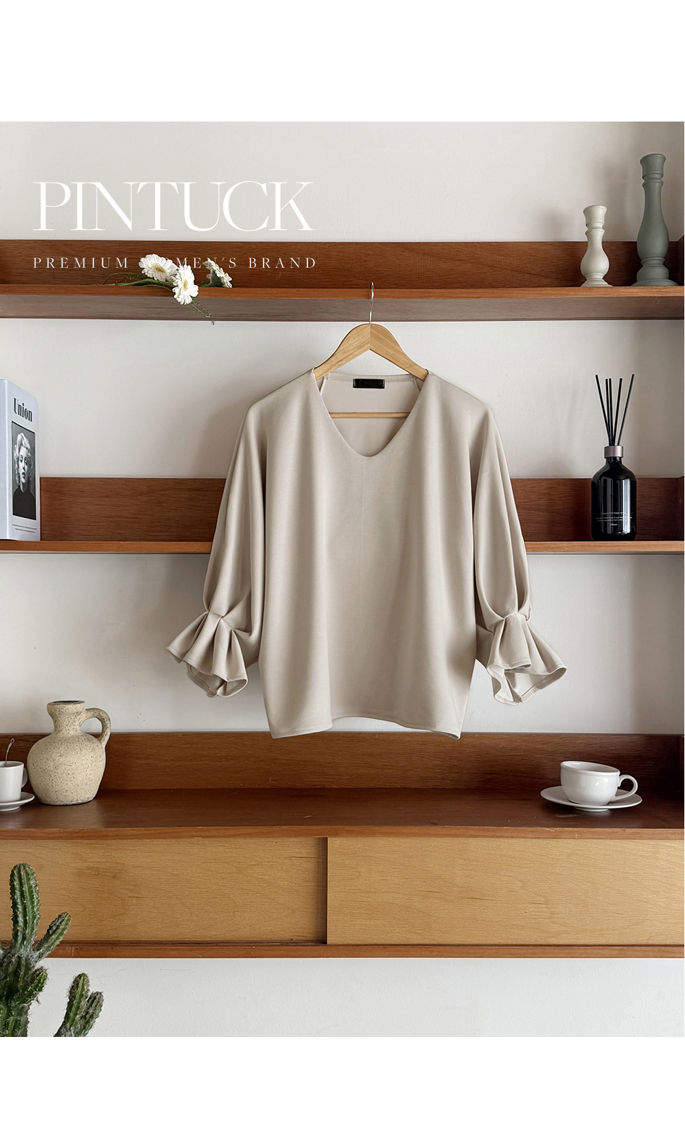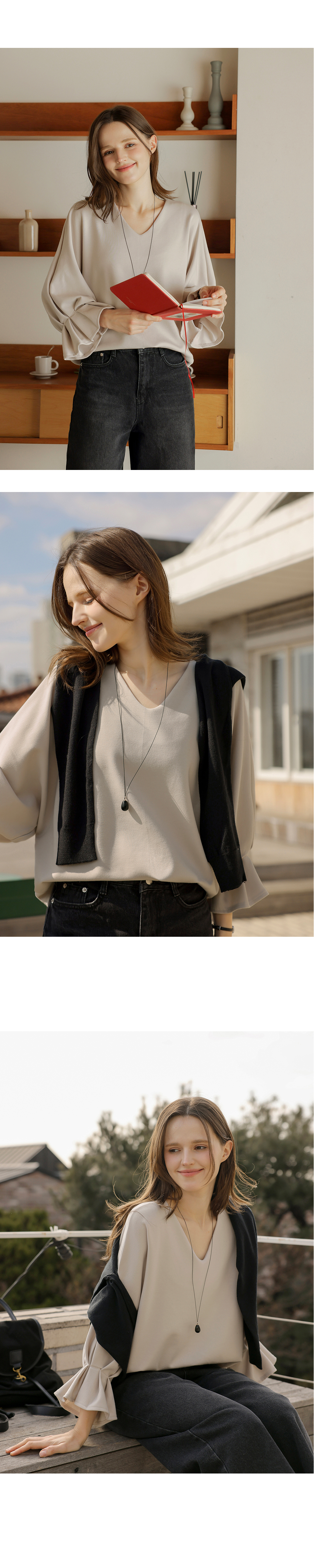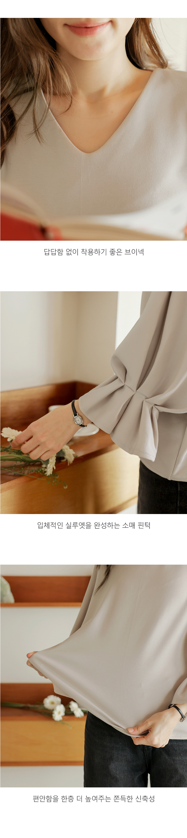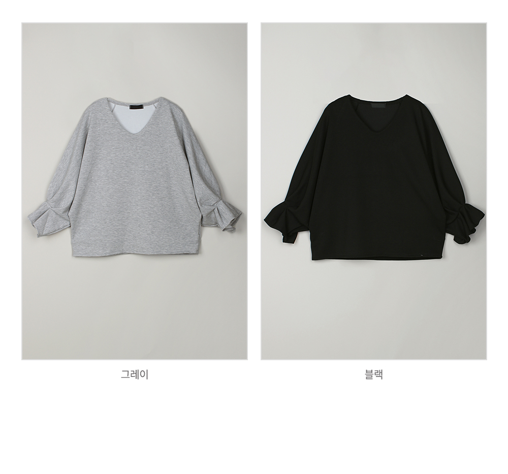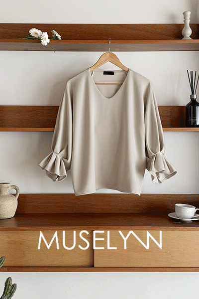 [뮤즈린] 볼드 소매핀턱 브이넥 티셔츠