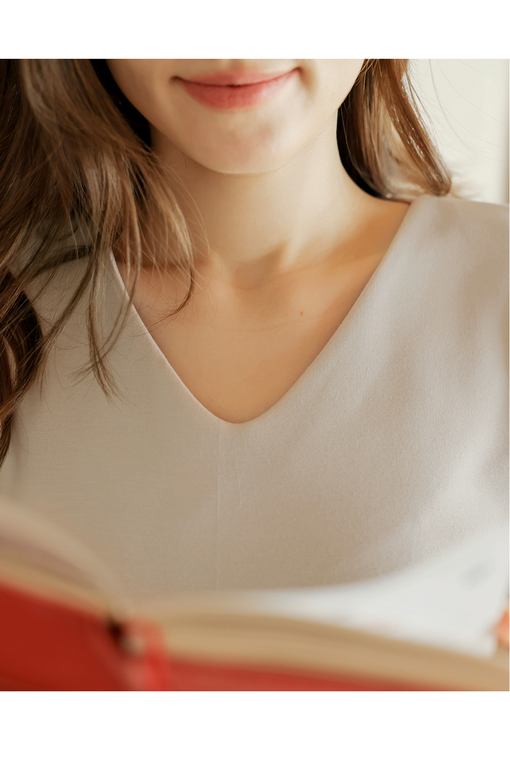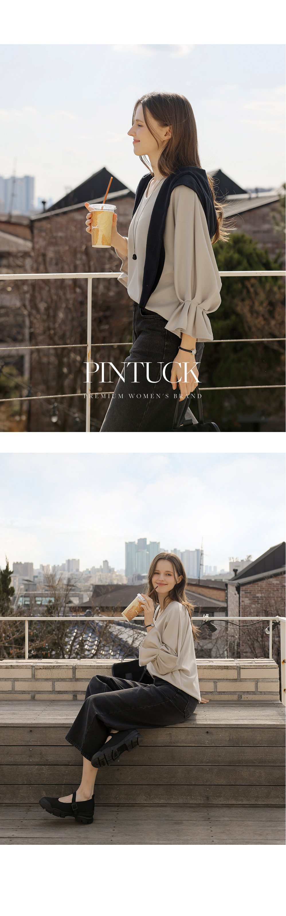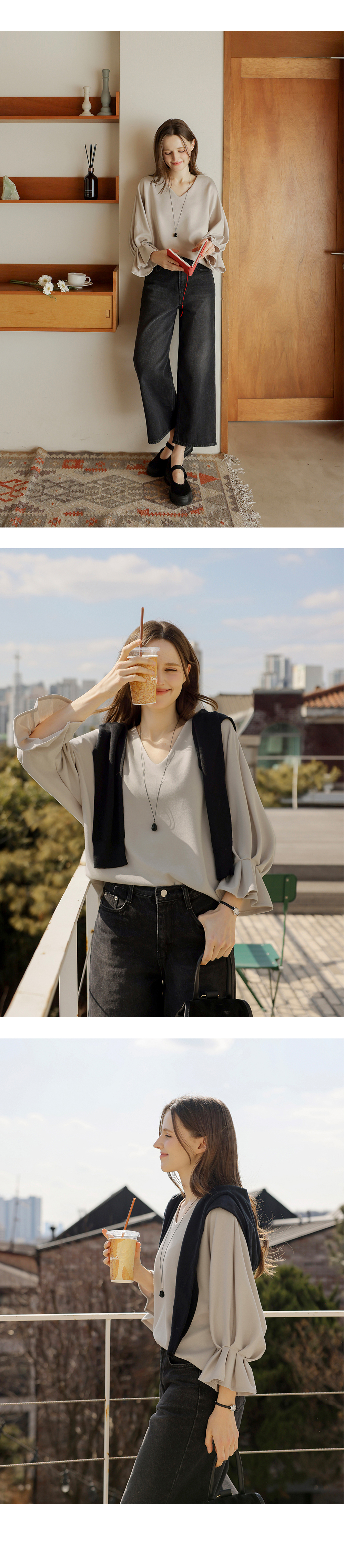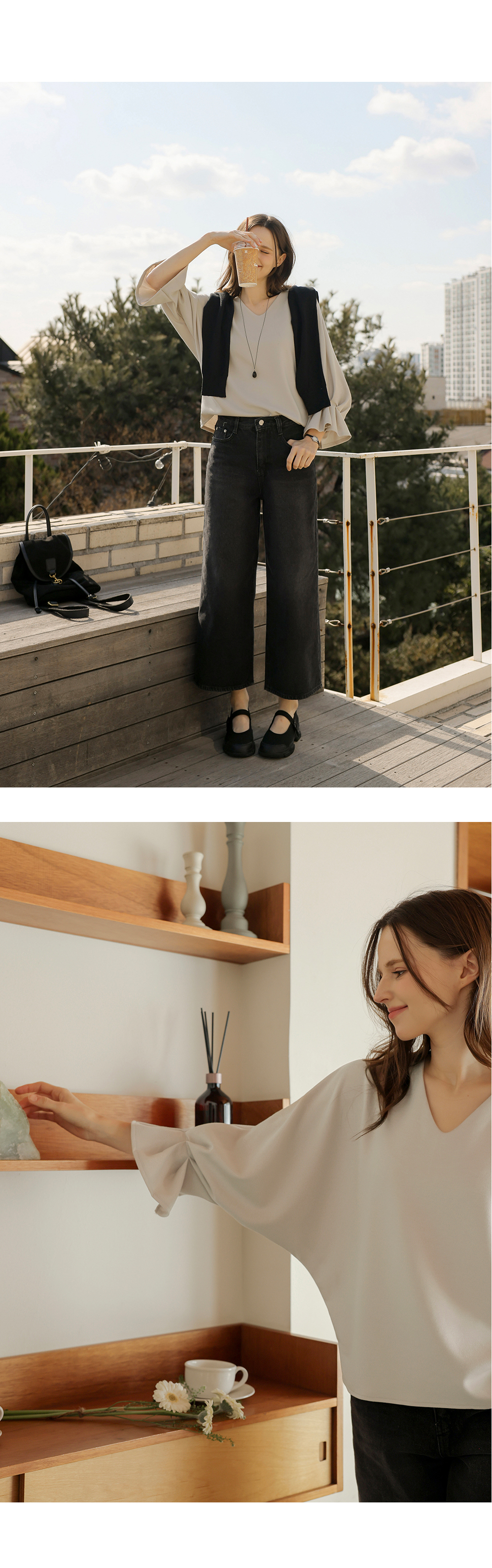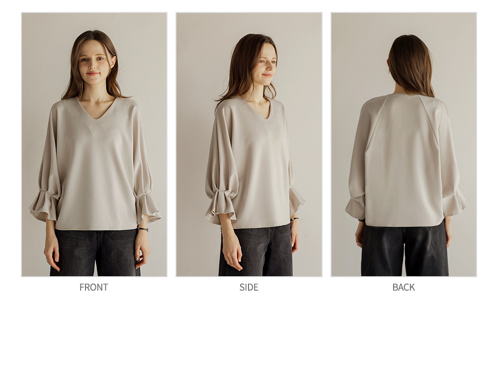 [뮤즈린] 볼드 소매핀턱 브이넥 티셔츠