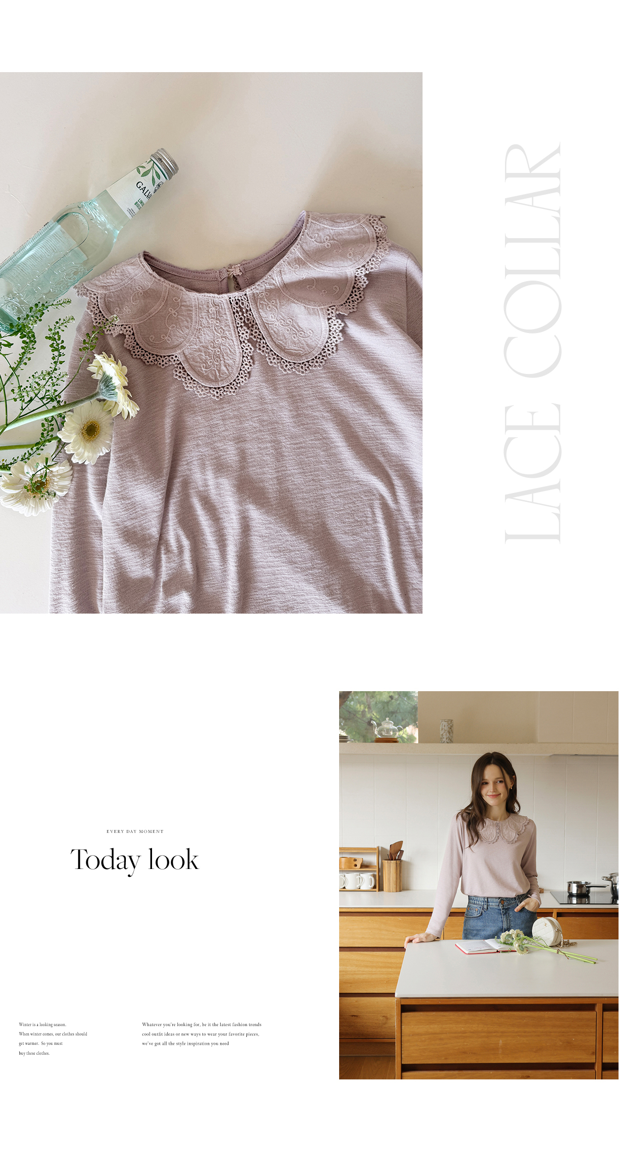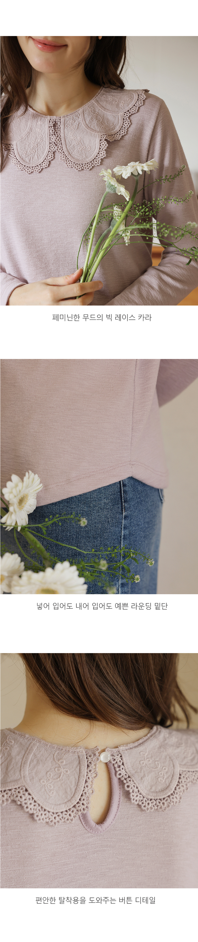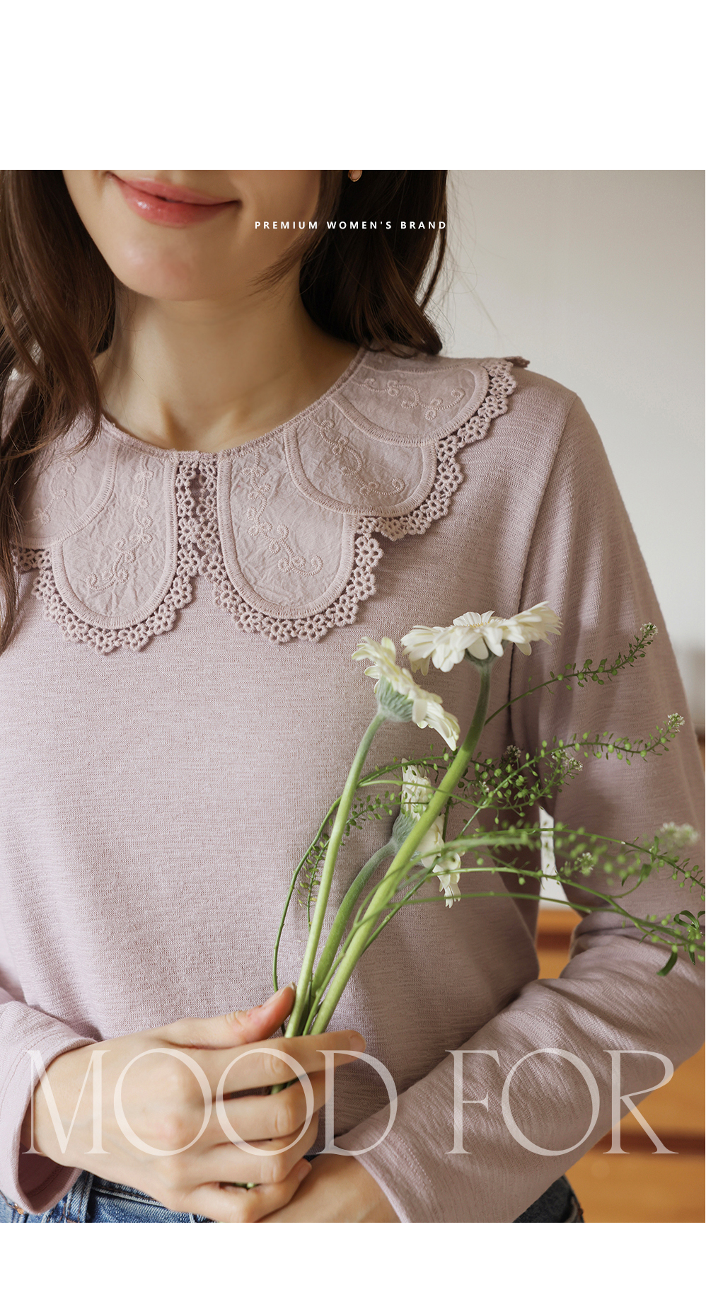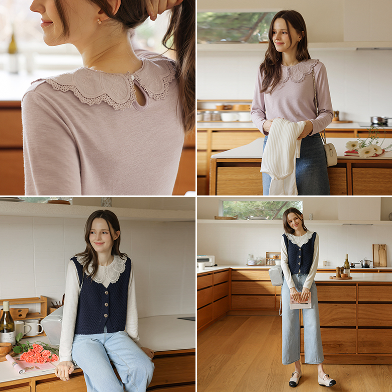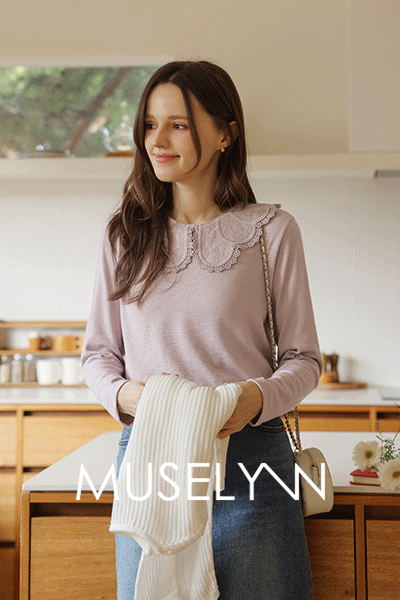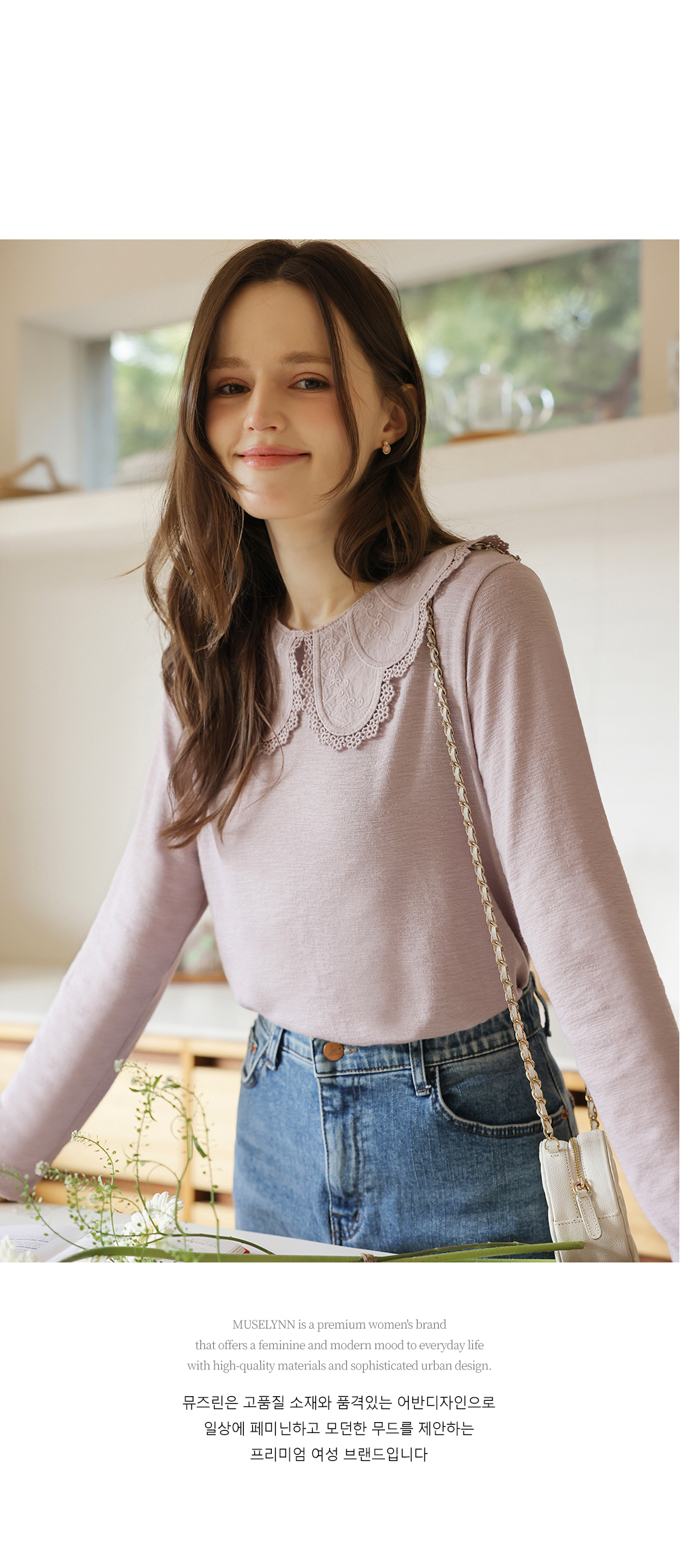 [뮤즈린] 앨리스 레이스카라 블라우스 티