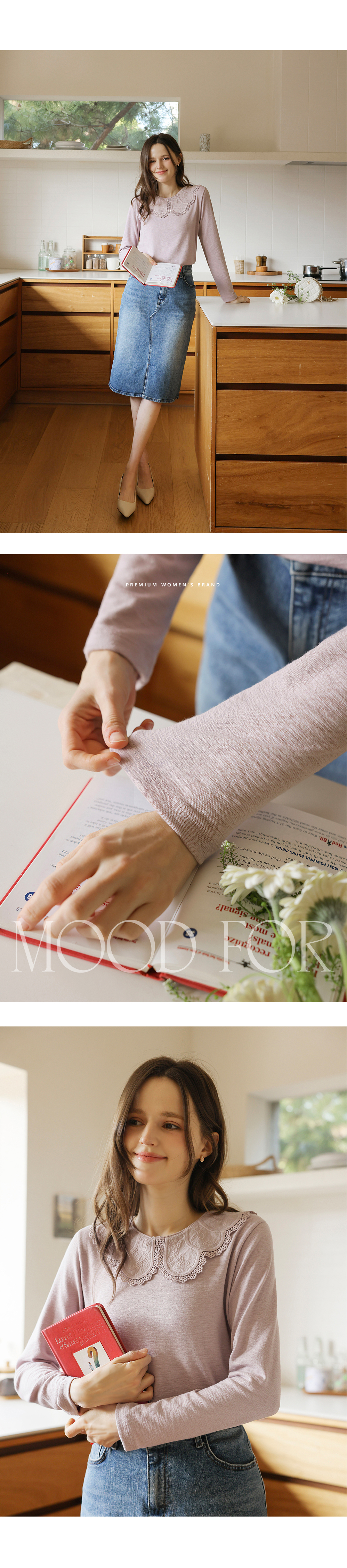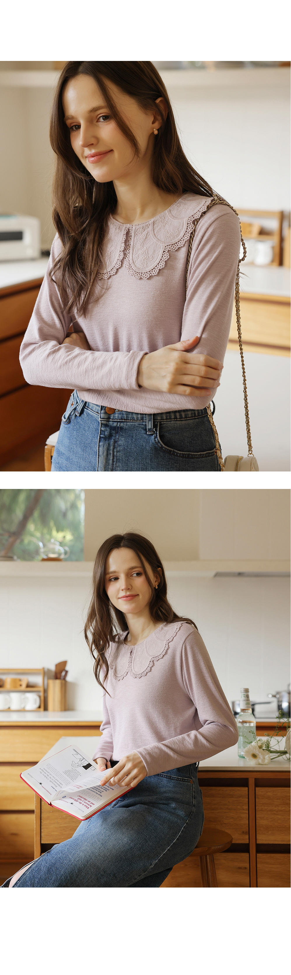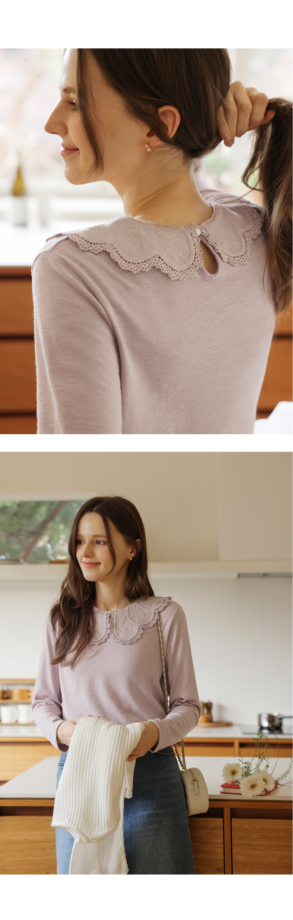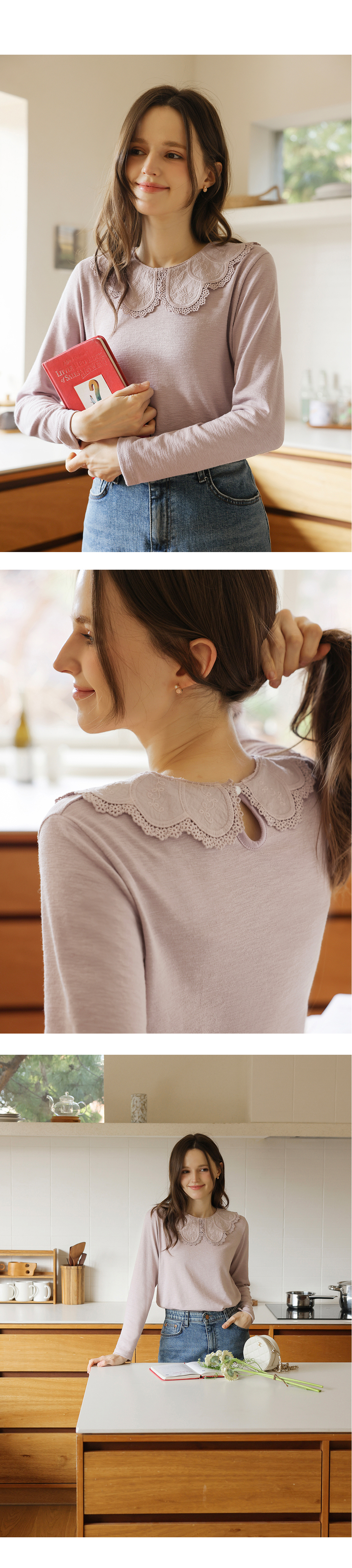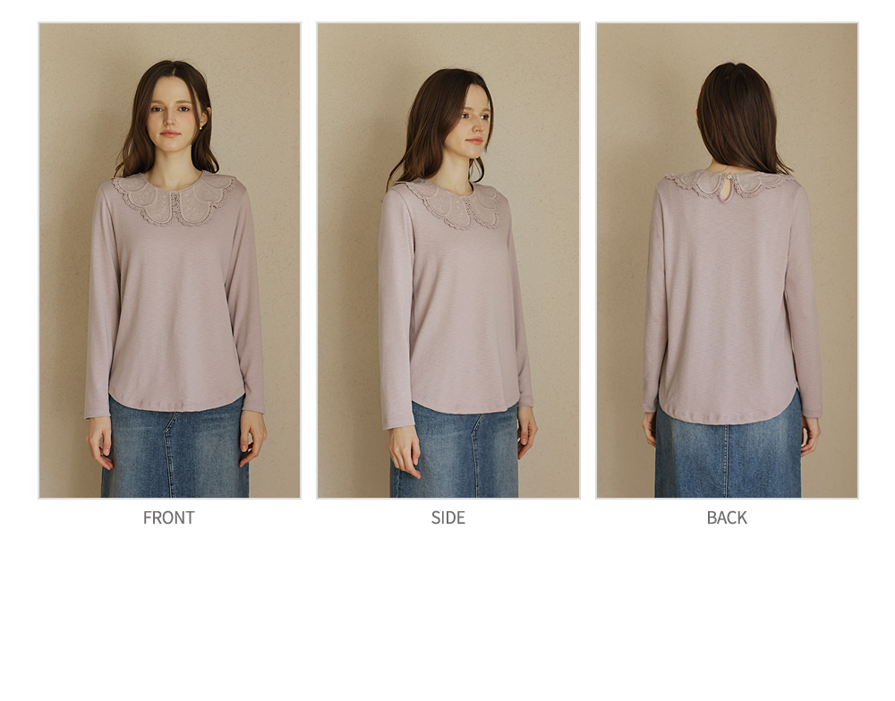 [뮤즈린] 앨리스 레이스카라 블라우스 티