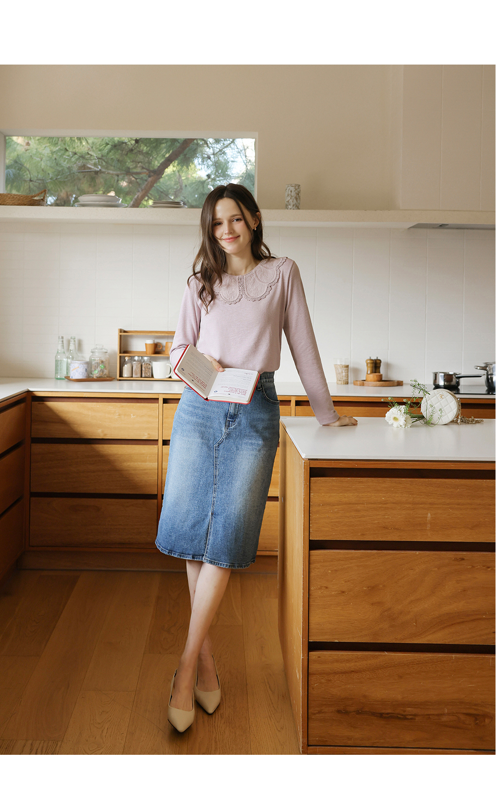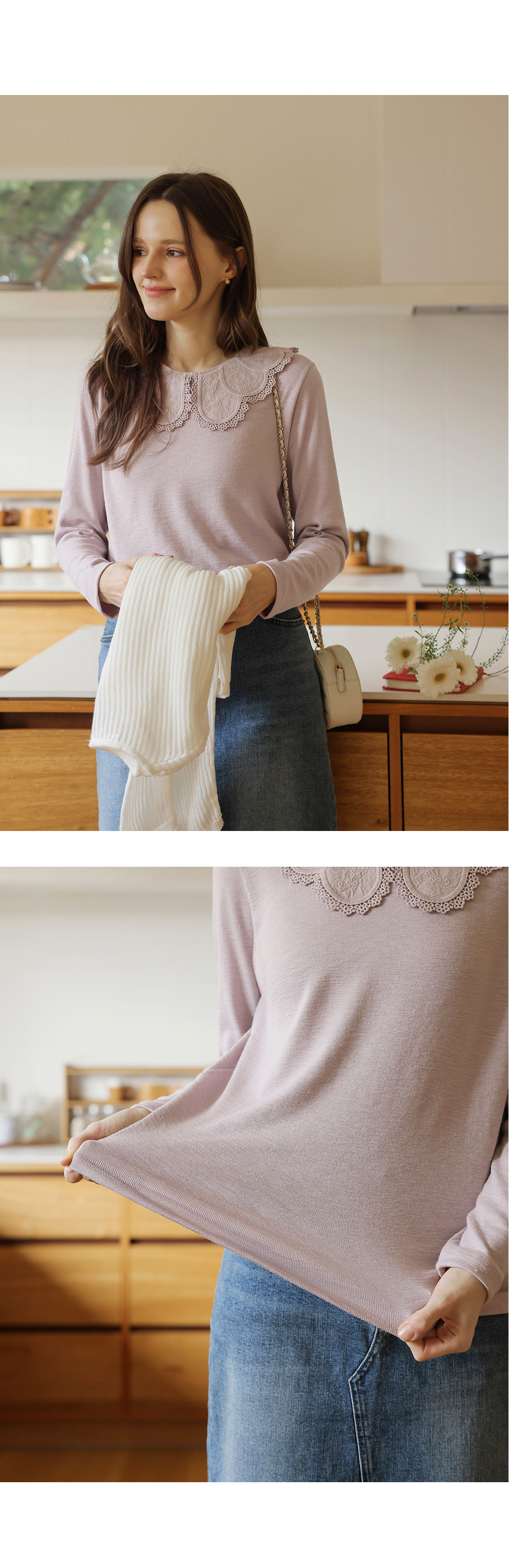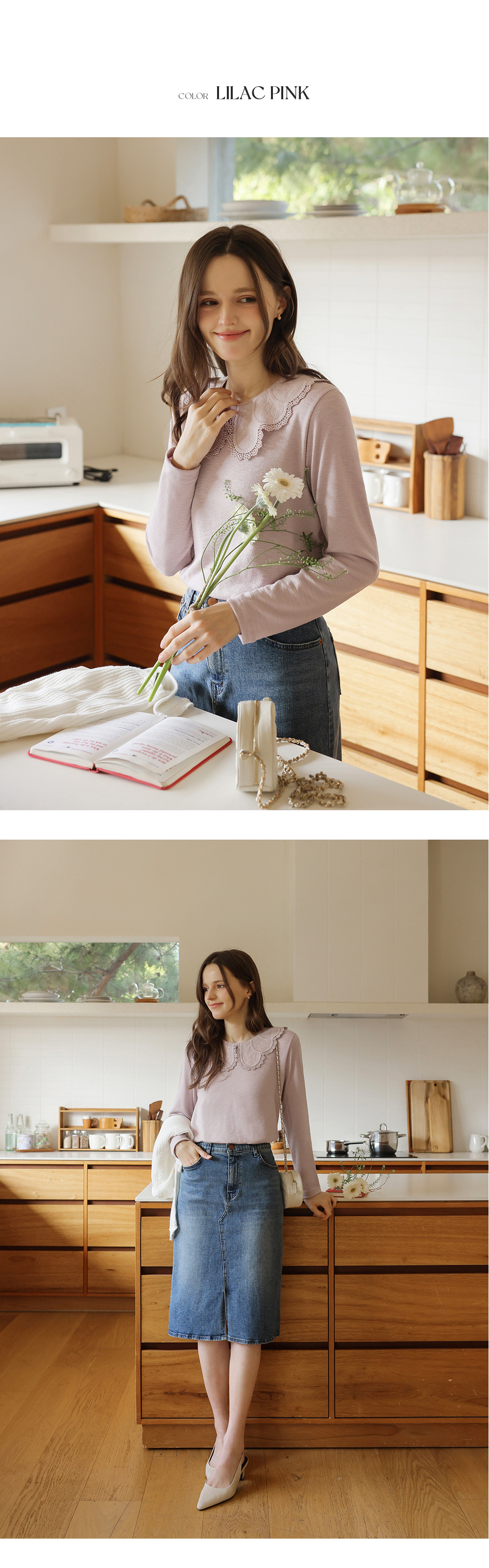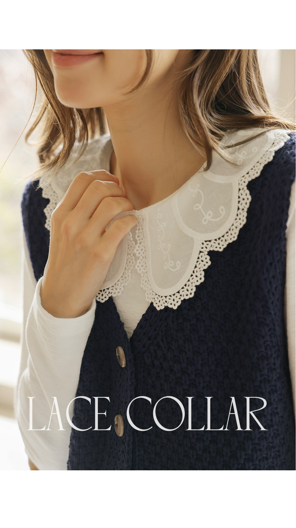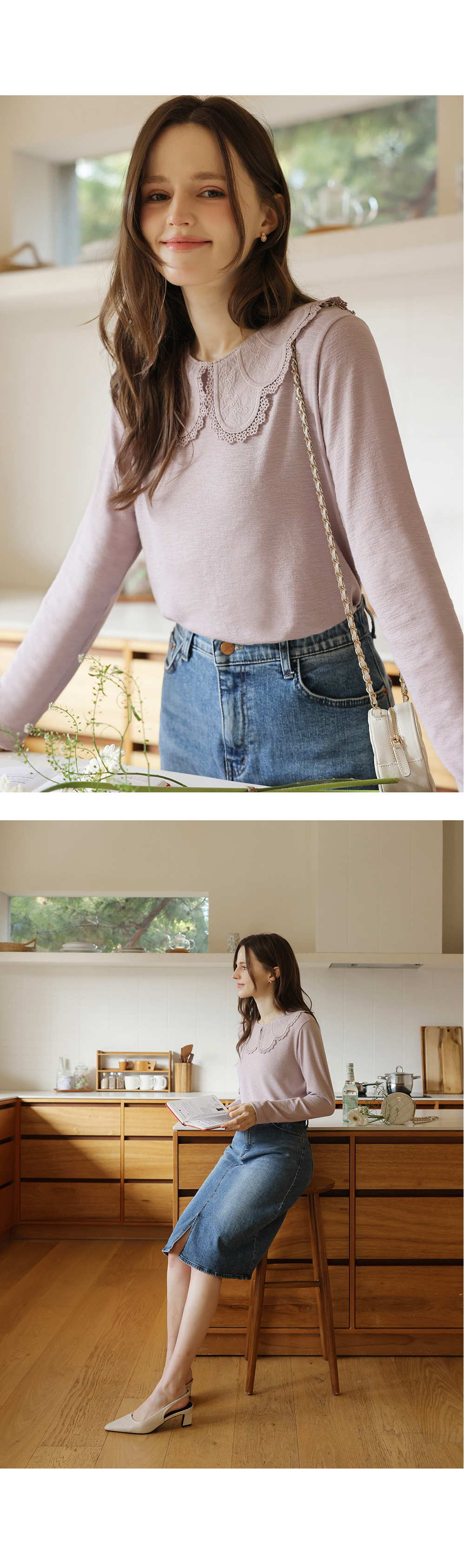 [뮤즈린] 앨리스 레이스카라 블라우스 티