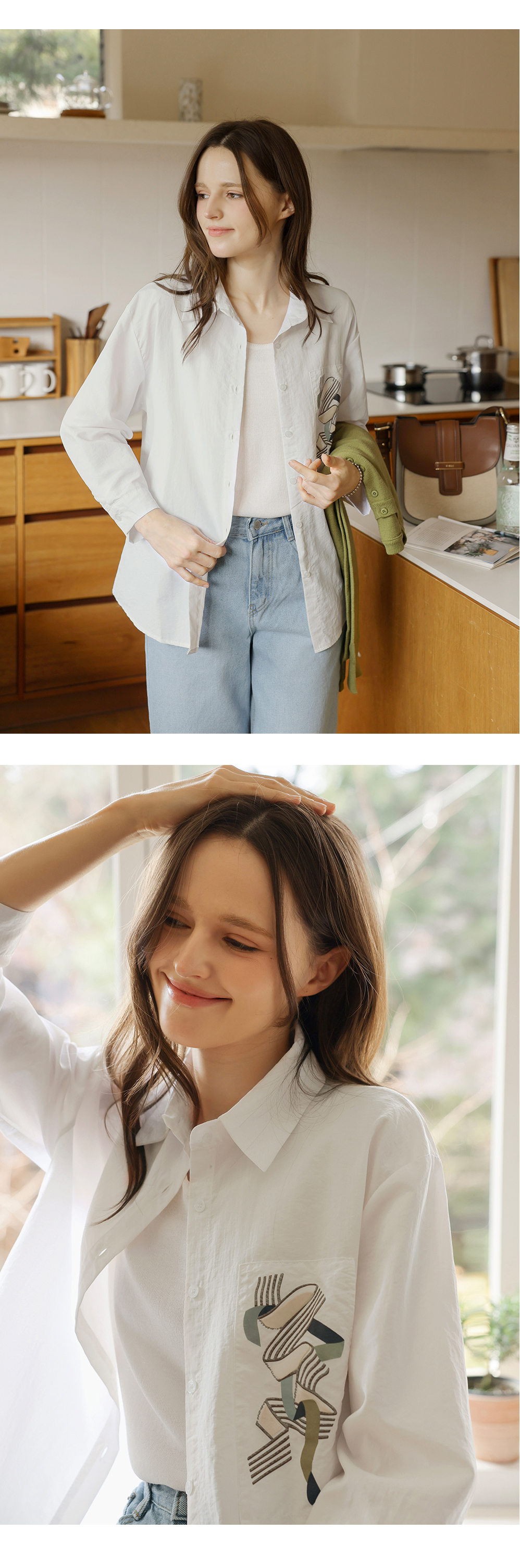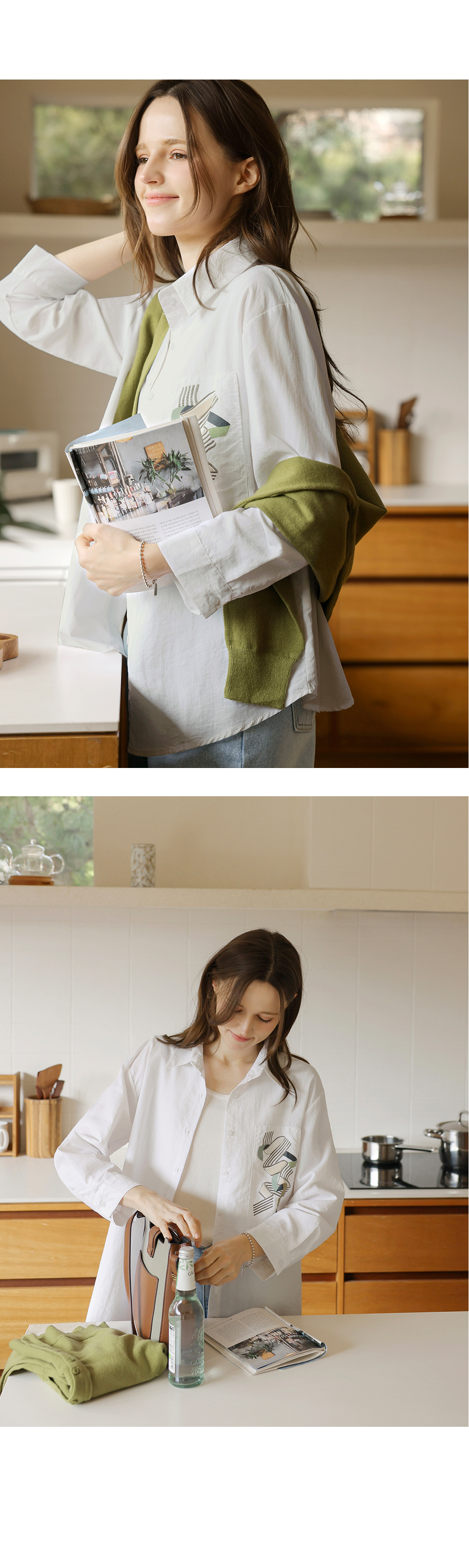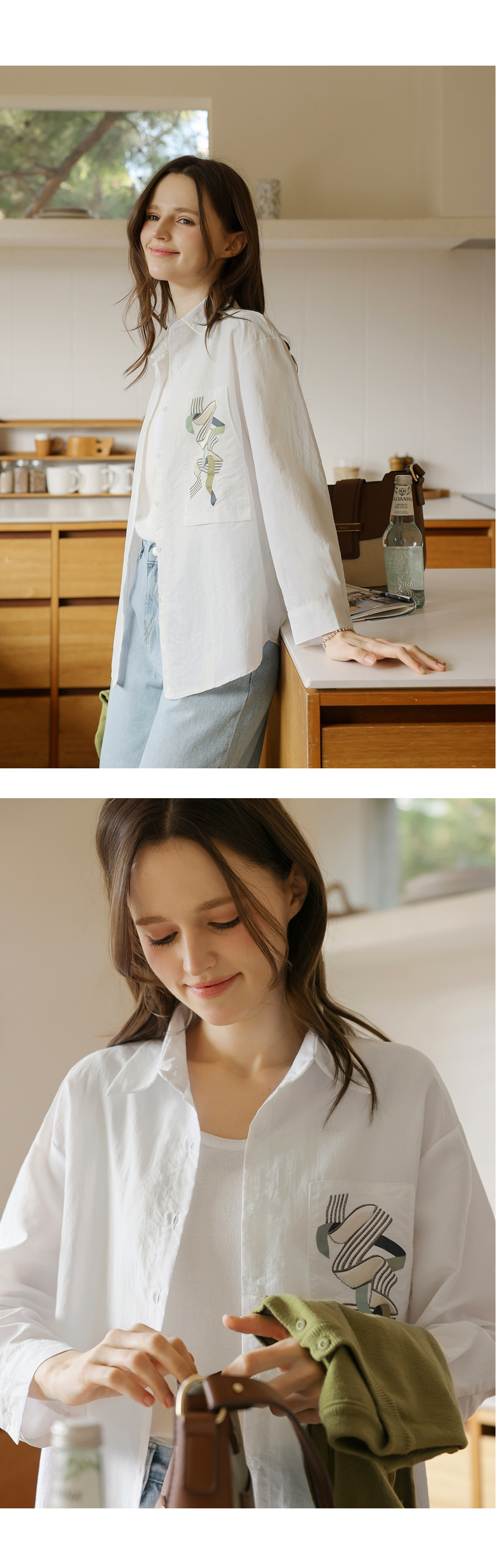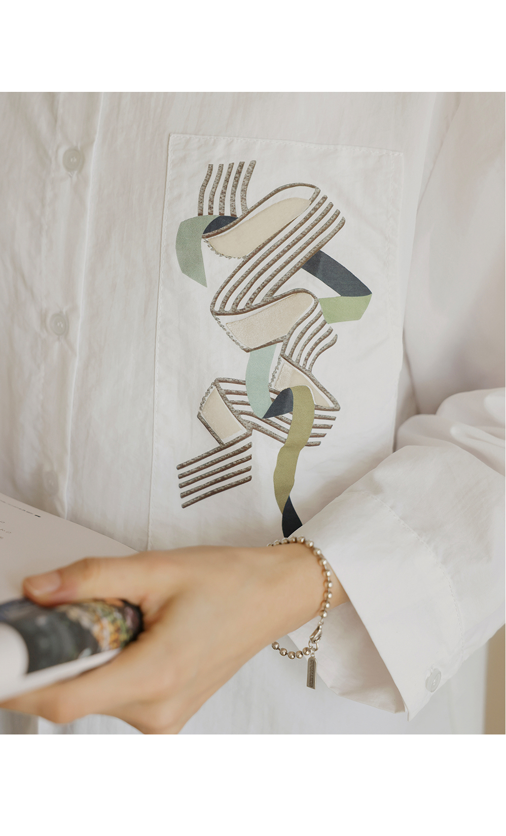[뮤즈린] 볼드 포켓 프린팅 바스락 셔츠