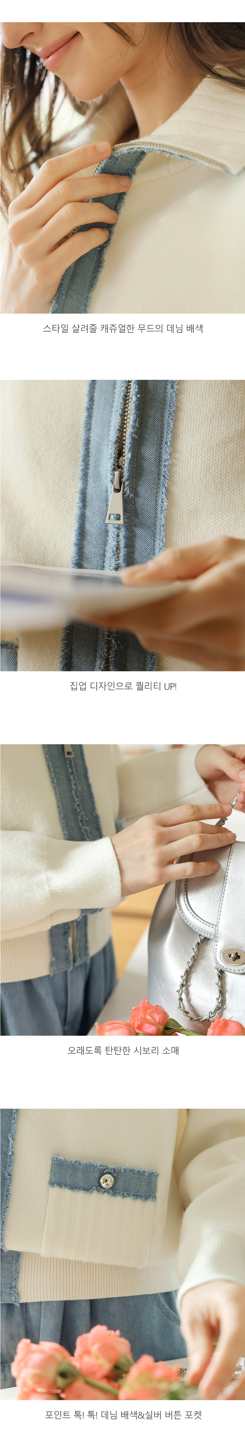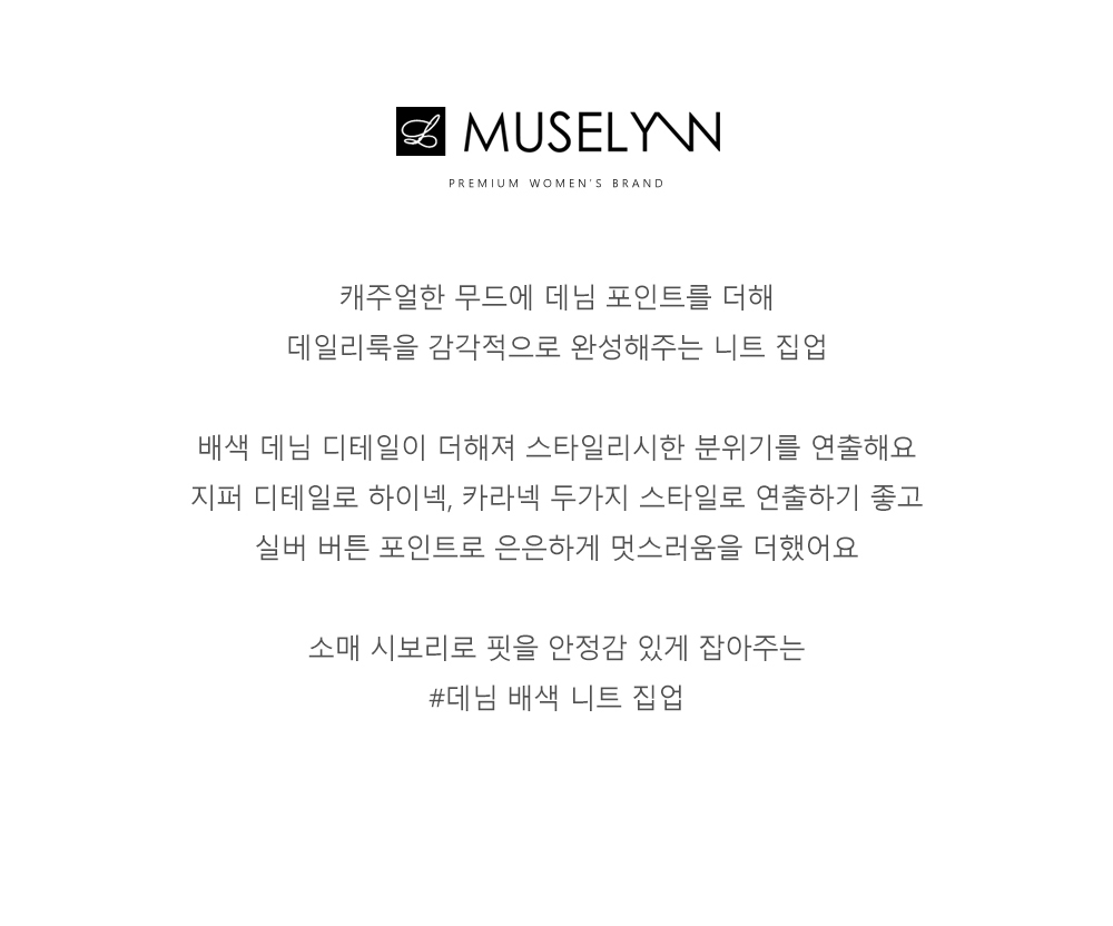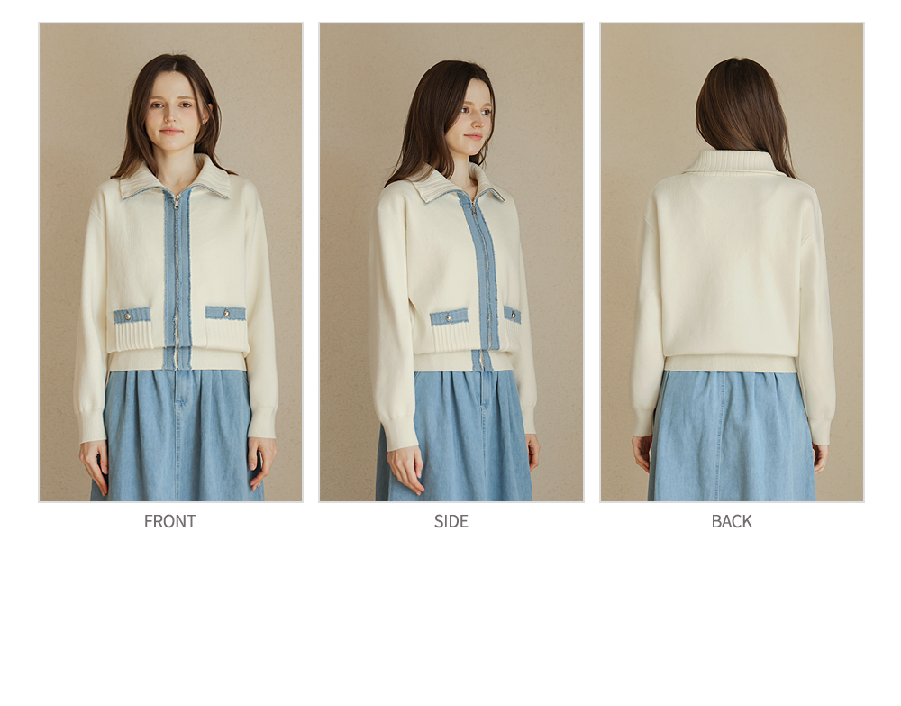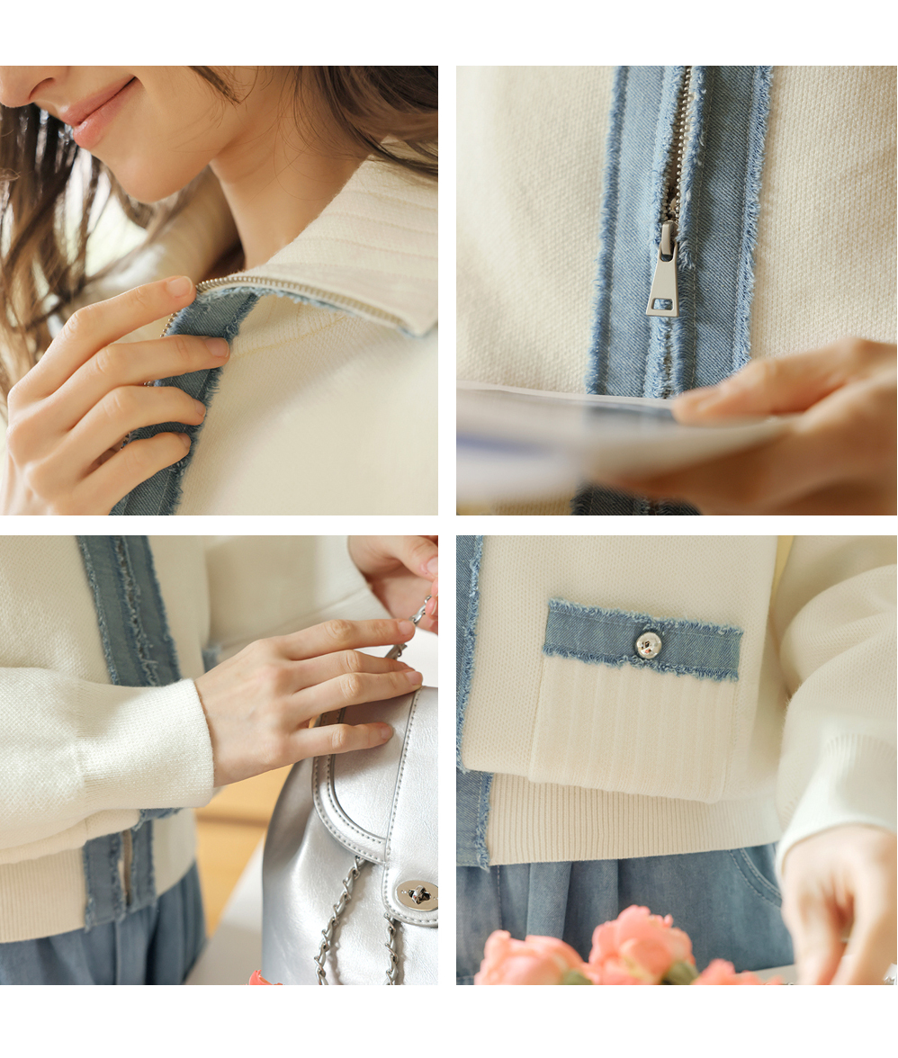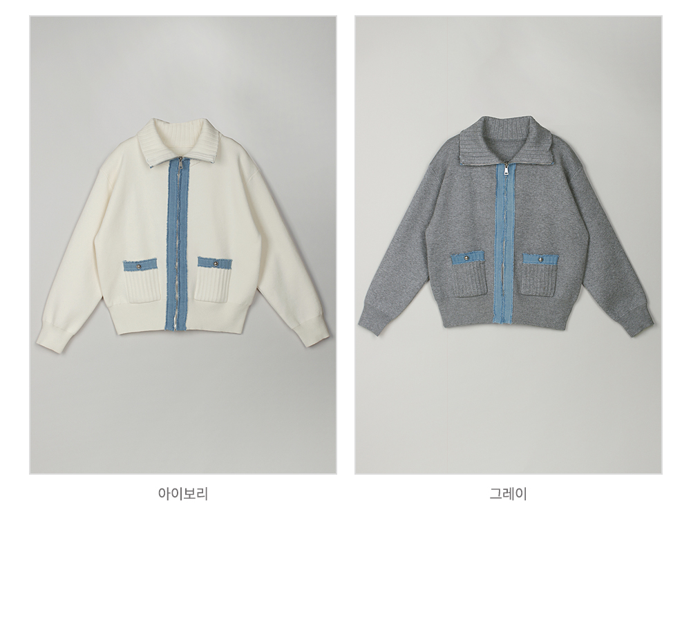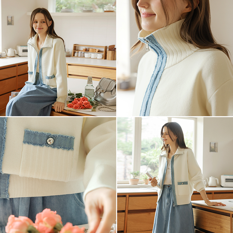 [뮤즈린] 치치 하이넥 데님배색 니트 집업