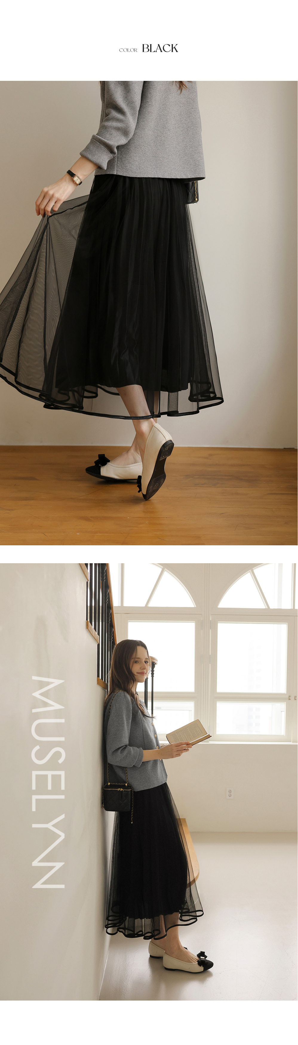 [뮤즈린] 모딘 리버시블 샤 스커트 [밴딩]