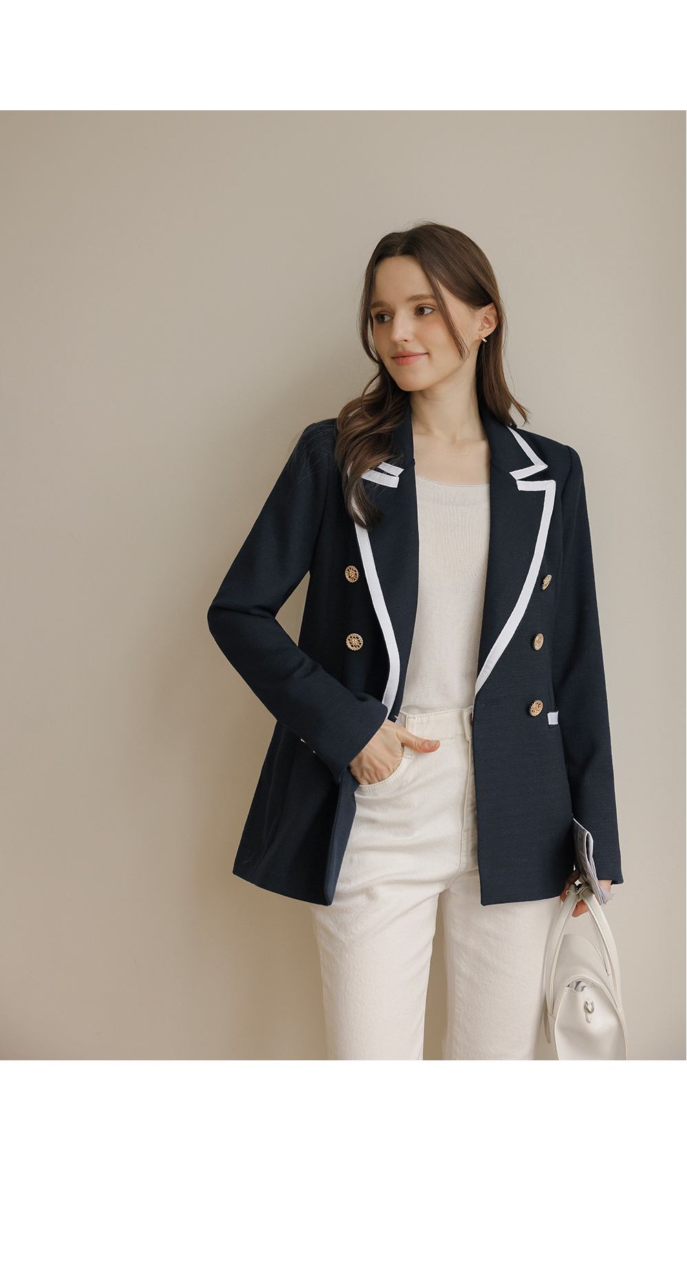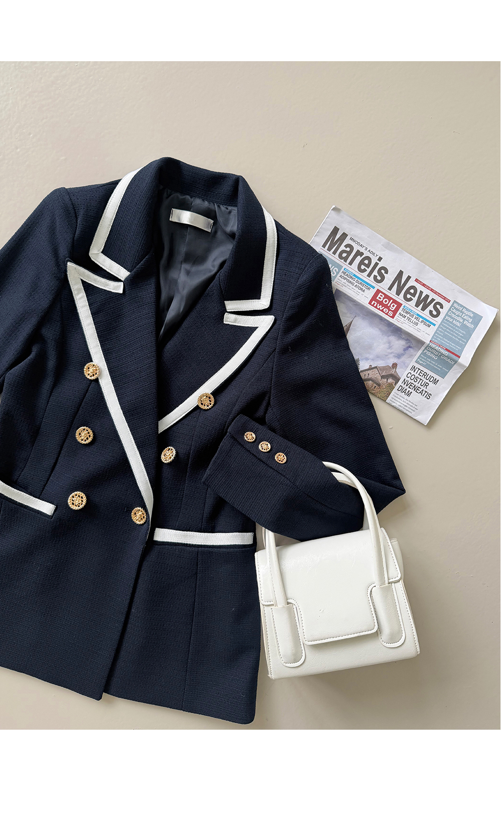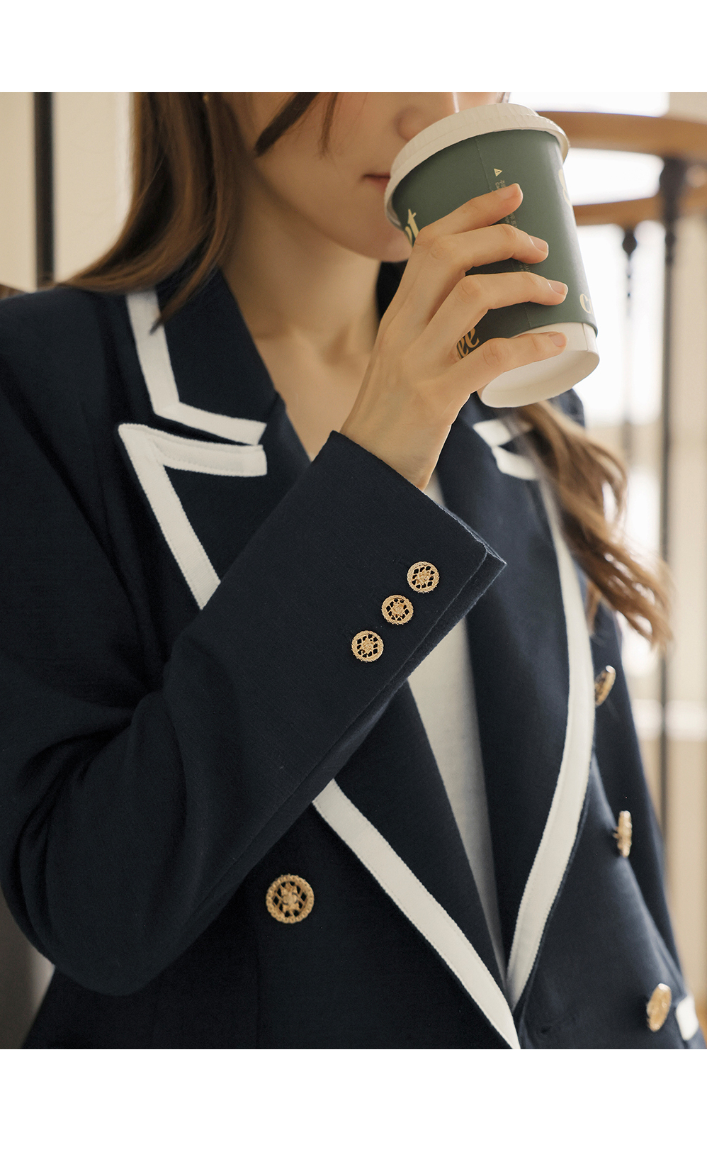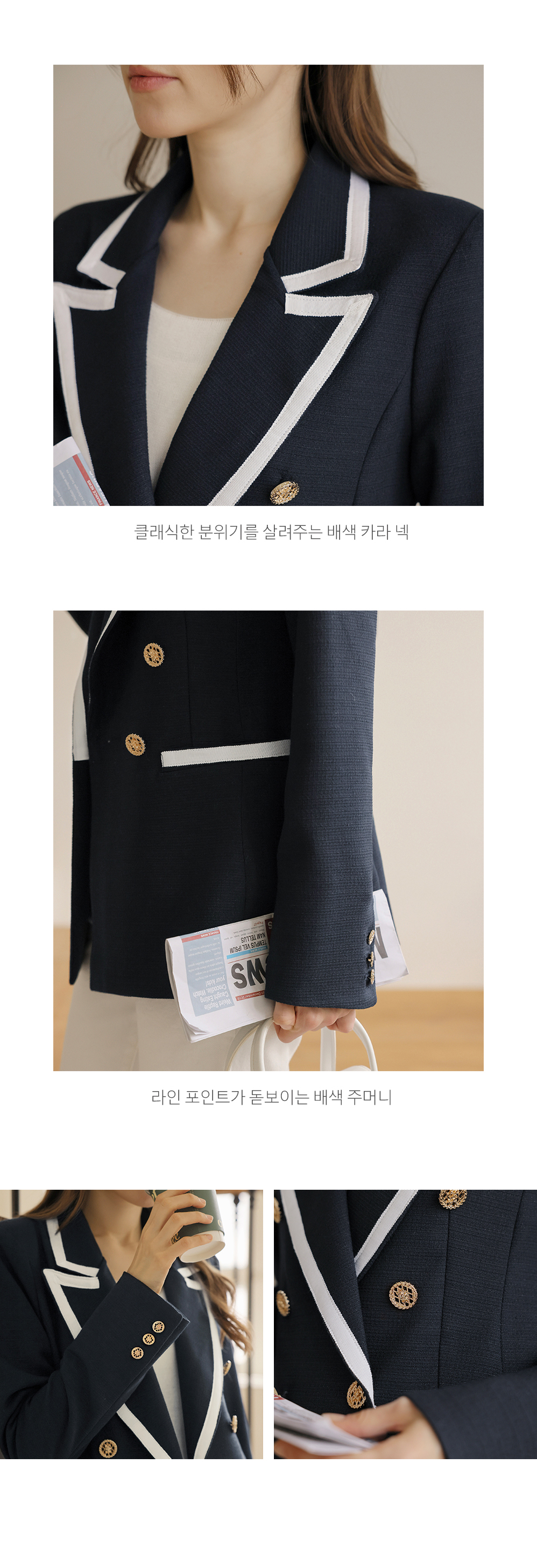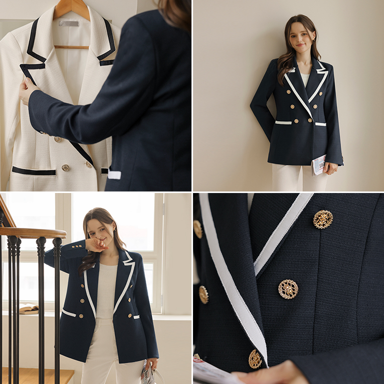 [뮤즈린] 바티 배색 테이핑 골드버튼 자켓